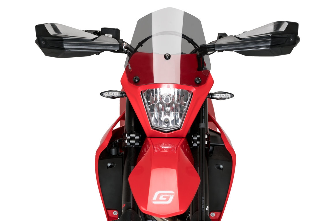 Carenabris Puig 21474H Naked New Generation Sport Gas Gas SM 700 2022-2023. Parabrisas Puig 21474 Naked New Generation específica para la nueva Gas Gas SM 700 2022-2023 y que gracias a su metracrilato de alto impacto con grosor de 3 mm, ofrece una gran resistencia y excelente fijación a la moto. Esta cúpula ha sido perfectamente estudiada para mejorar la protección del motorista contra el viento. La cúpula Puig Naked New Generation Sport se caracteriza por sus acabados de gran calidad. El montaje de la cúpula es una tarea sencilla y se ajusta a la perfección a la moto. Para facilitar el montaje, Puig sirve junto al carenabris con las correspondientes instrucciones. Homologación ABE 3818 y TÜV. Homologación ABE 3818 y TÜV.