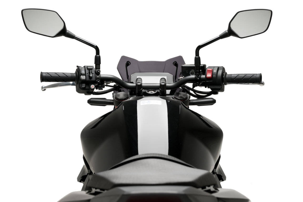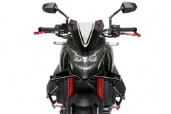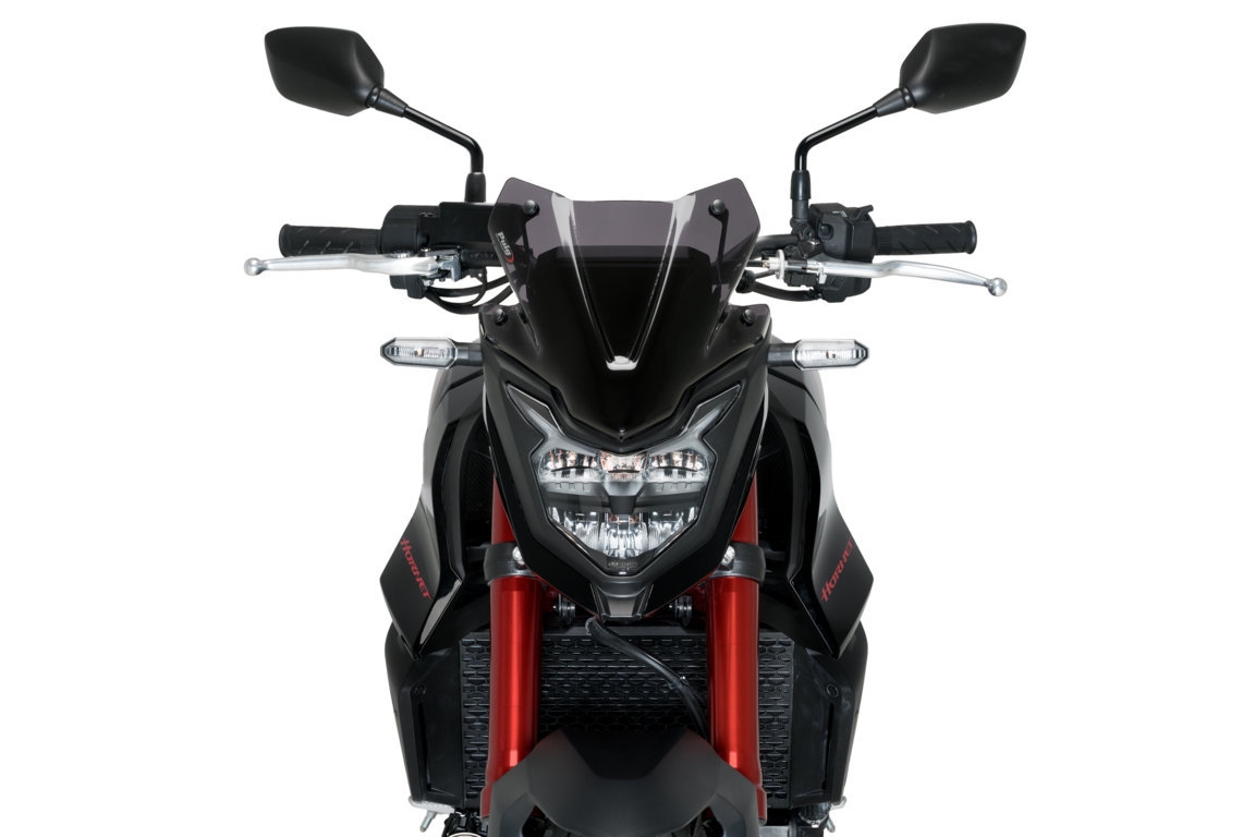 Carenabris Puig 21479F Naked New Generation Sport Honda CB 750 Hornet 2023. Parabrisas Puig 21479 Naked New Generation específica para la nueva Honda CB 750 Hornet 2023 y que gracias a su metracrilato de alto impacto con grosor de 3 mm, ofrece una gran resistencia y excelente fijación a la moto. Esta cúpula ha sido perfectamente estudiada para mejorar la protección del motorista contra el viento.