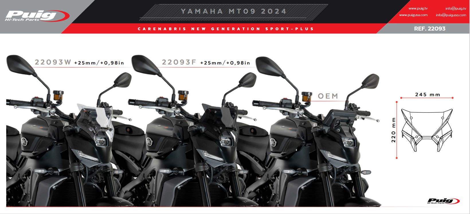Estudio comparativo del Carenabris Puig 22093N Yamaha MT-09 2024 New Generation Sport Plus: