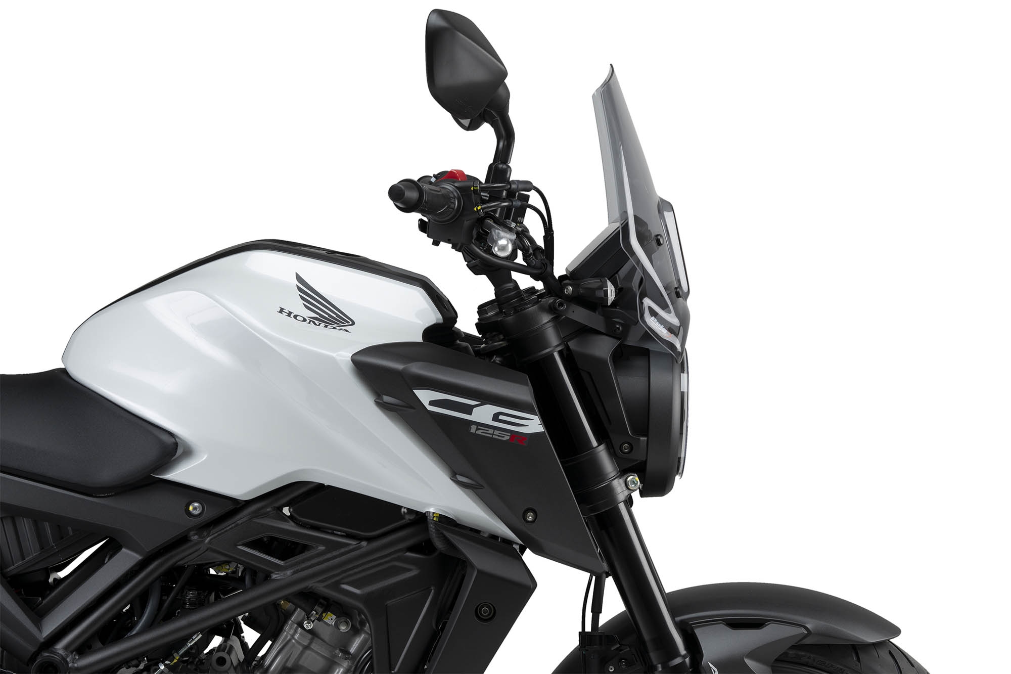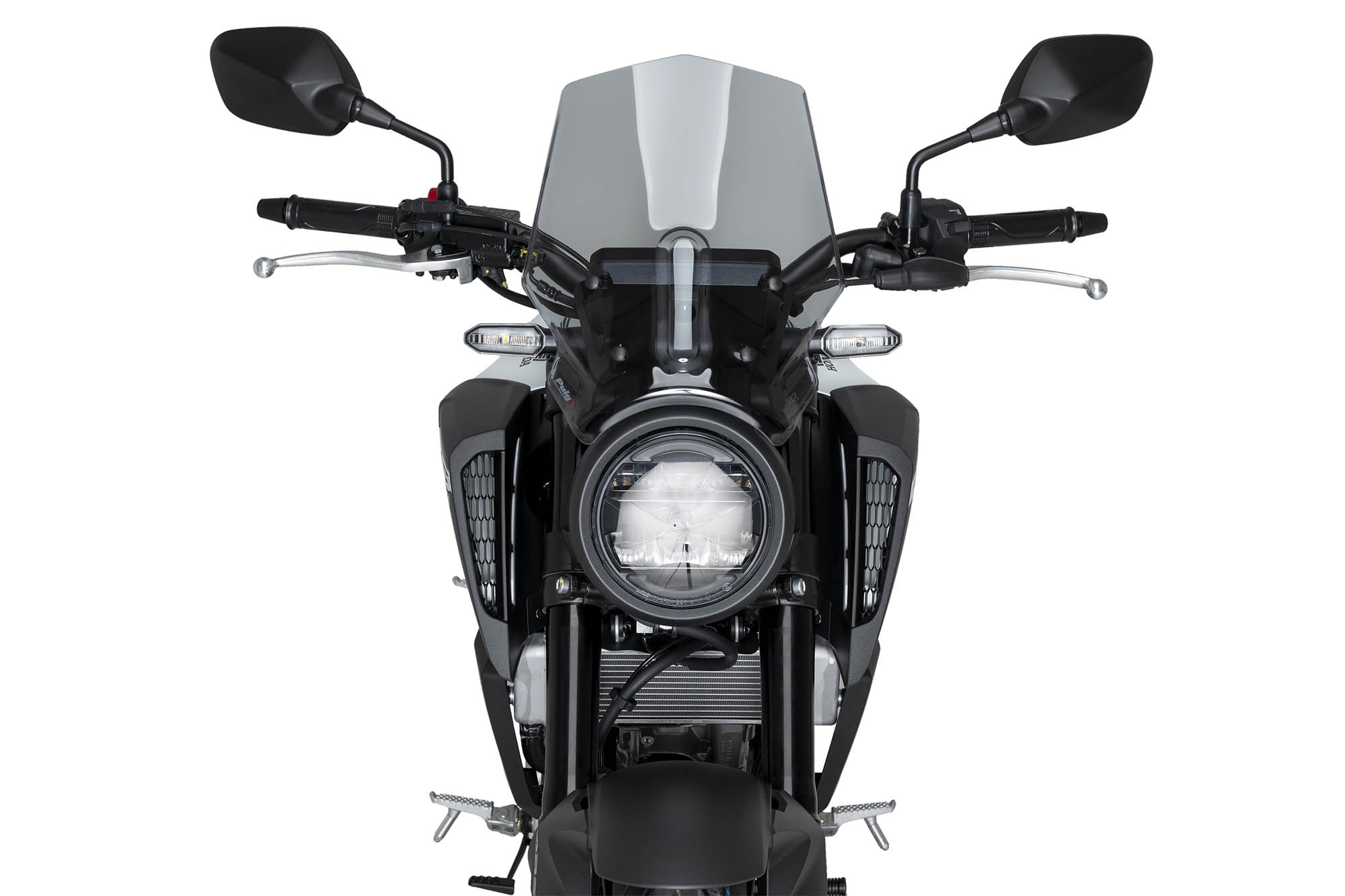 Carenabris Sport Puig 22296H Honda CB125R-300R Neo Sports Cafe 2024-2025 Ahumado Claro. El carenabris Sport Puig 22296 ha sido diseñado específicamente para las Honda CB125R y CB300R (2024-2025), aportando una estética más agresiva y una mejor protección aerodinámica sin alterar la esencia naked y minimalista de la gama Neo Sports Café. Disponible en Ramírez Moto en varios acabados, combina estilo, resistencia y funcionalidad.