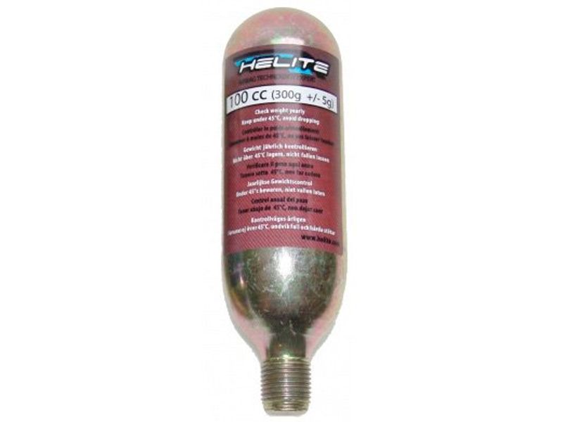 Cartucho Airbag Helite CO2 100cc. Cartucho de recambio para los chalecos con Airbag Helite. Es recomendable verificarel peso del cartucho cada año. Saca el cartucho de CO2 y verifica que el peso indicado en el cartucho sea +/- 3g al peso indicado en la escala.
