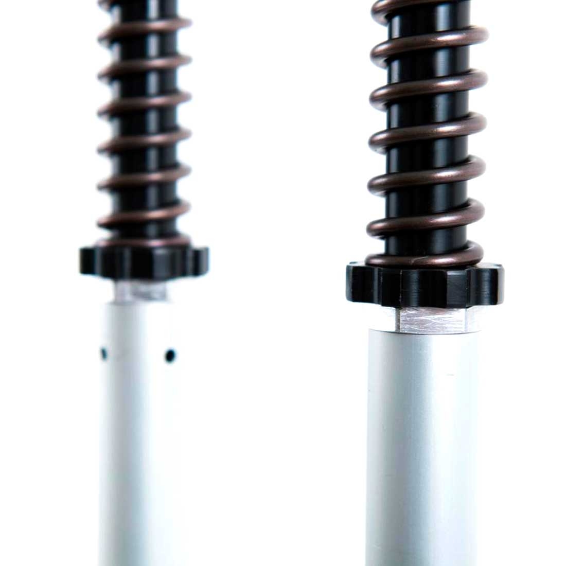 Cartuchos Ohlins FKS 203 NIX22 Yamaha MT 03 2016-18. El kit de cartuchos Öhlins NIX 22 FKS 203 ofrece un elevado rendimiento y estabilidad. Estos cartuchos también también aportan mayor confort y confianza del piloto sobre la moto. El kit posee el diseño NIX de Öhlins con la compresión en la barra izquierda y la extensión en la barra derecha. Esta características contribuye a una función y estabilidad más precisas. Los reguladores hidráulicos están situados en la zona superior junto con los reguladores de precarga del muelle. El sistema de cartuchos se atornilla y es fácil de instalar en horquillas delanteras estándar. El kit de cartuchos NIX 22 ha sido probado exhaustivamente y hecho a medida para adaptarse a los requisitos y características individuales de cada moto. Los muelles se adquieren por separado con la referencia (08429-xx).