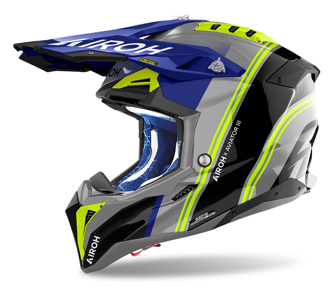 Casco Airoh Aviator 3 Hima Azul Brillo. Casco Airoh Aviator 3: tecnología, rendimiento y seguridad en cada detalle. El casco Airoh Aviator 3 representa la evolución del legendario Aviator, ahora mejorado para cumplir con la normativa ECE 22.06. Este modelo combina las tecnologías más avanzadas con un diseño aerodinámico optimizado, ofreciendo una experiencia única tanto en la carretera como en la pista. Airoh ha elevado el listón con el Airoh Aviator 3, incorporando innovaciones que garantizan la máxima seguridad, confort y rendimiento.
