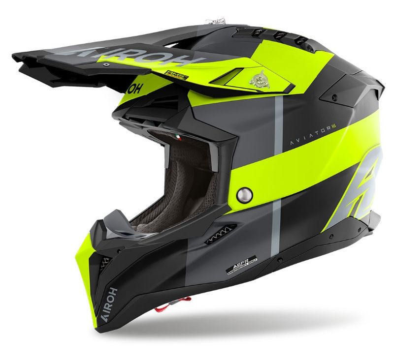 Casco Airoh Aviator 3 Monarch Amarillo Mate. Casco Airoh Aviator 3: tecnología, rendimiento y seguridad en cada detalle. El casco Airoh Aviator 3 representa la evolución del legendario Aviator, ahora mejorado para cumplir con la normativa ECE 22.06. Este modelo combina las tecnologías más avanzadas con un diseño aerodinámico optimizado, ofreciendo una experiencia única tanto en la carretera como en la pista. Airoh ha elevado el listón con el Airoh Aviator 3, incorporando innovaciones que garantizan la máxima seguridad, confort y rendimiento.