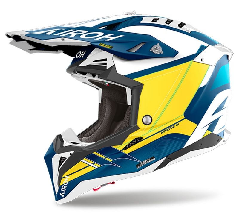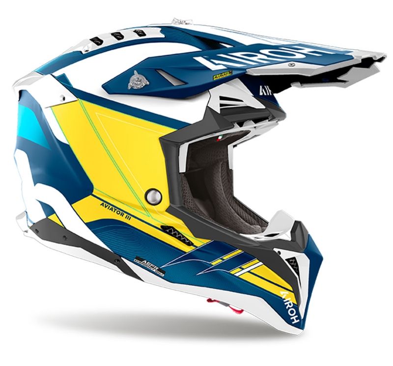 Casco Airoh Aviator 3 Saber Azul Mate. Casco Airoh Aviator 3: tecnología, rendimiento y seguridad en cada detalle. El casco Airoh Aviator 3 representa la evolución del legendario Aviator, ahora mejorado para cumplir con la normativa ECE 22.06. Este modelo combina las tecnologías más avanzadas con un diseño aerodinámico optimizado, ofreciendo una experiencia única tanto en la carretera como en la pista. Airoh ha elevado el listón con el Airoh Aviator 3, incorporando innovaciones que garantizan la máxima seguridad, confort y rendimiento.