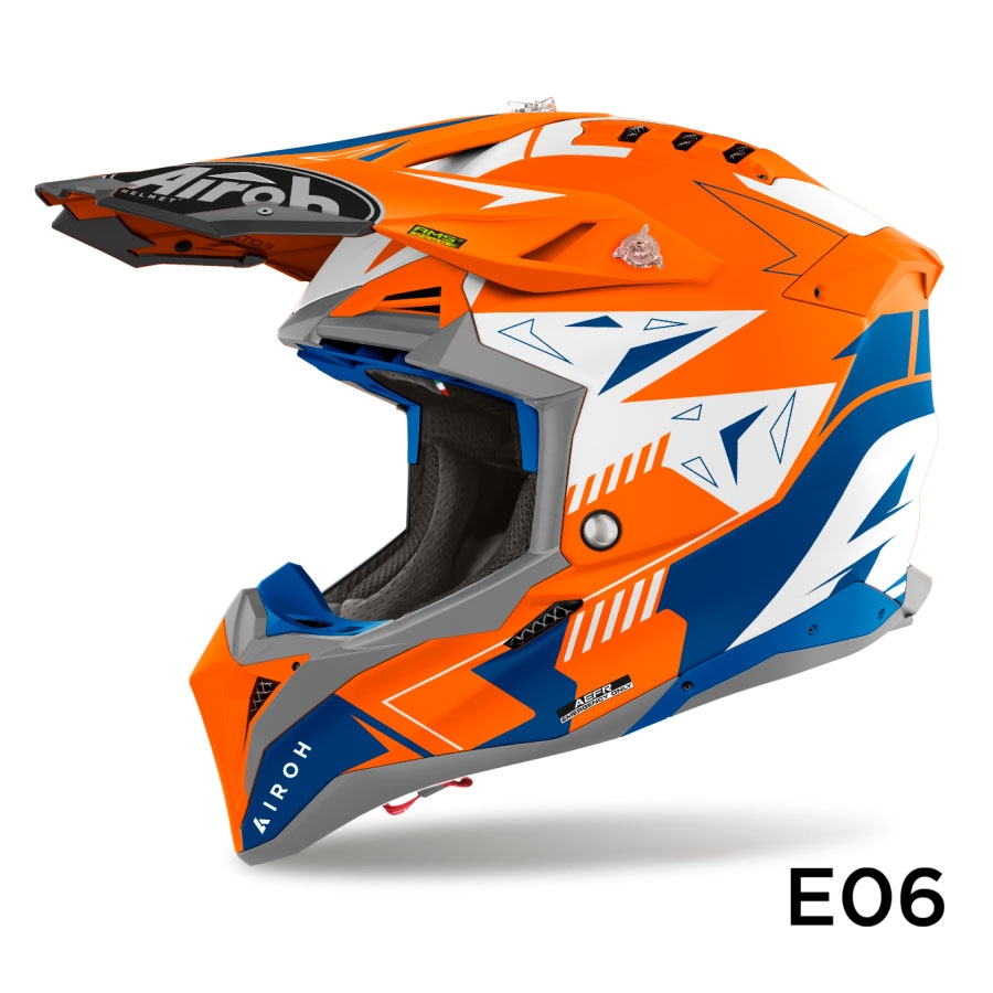 - A.E.F.R (Airoh Emergency Fast Remove): permite la extracción rápida de los acolchados laterales en caso de accidente, facilitando la retirada del casco.