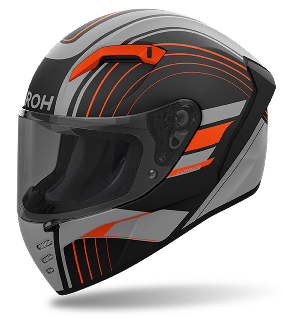 Casco Airoh Connor Achieve Naranja Mate. Casco para moto de carretera Airoh Connor con diseño aerodinámico y confort avanzado. Inspirado en la fuerza y fluidez del viento, el Airoh Connor es el compañero perfecto para cualquier aventura en moto. Con un diseño moderno, gráficos cautivadores y características orientadas al rendimiento, este casco es un imprescindible para quienes buscan combinar estilo, comodidad y seguridad.