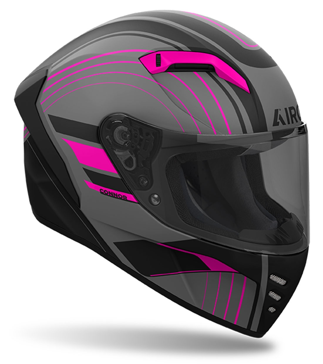 Casco Airoh Connor Achieve Rosa Mate. Casco para moto de carretera Airoh Connor con diseño aerodinámico y confort avanzado. Inspirado en la fuerza y fluidez del viento, el Airoh Connor es el compañero perfecto para cualquier aventura en moto. Con un diseño moderno, gráficos cautivadores y características orientadas al rendimiento, este casco es un imprescindible para quienes buscan combinar estilo, comodidad y seguridad.