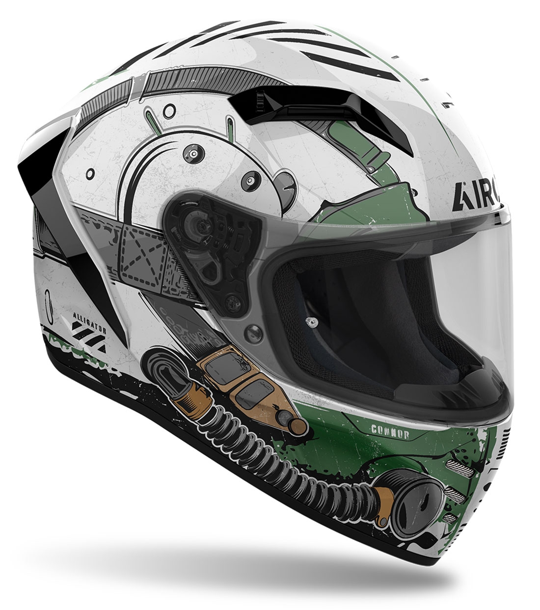 Casco Airoh Connor Alligator Brillo. Casco para moto de carretera Airoh Connor con diseño aerodinámico y confort avanzado. Inspirado en la fuerza y fluidez del viento, el Airoh Connor es el compañero perfecto para cualquier aventura en moto. Con un diseño moderno, gráficos cautivadores y características orientadas al rendimiento, este casco es un imprescindible para quienes buscan combinar estilo, comodidad y seguridad.