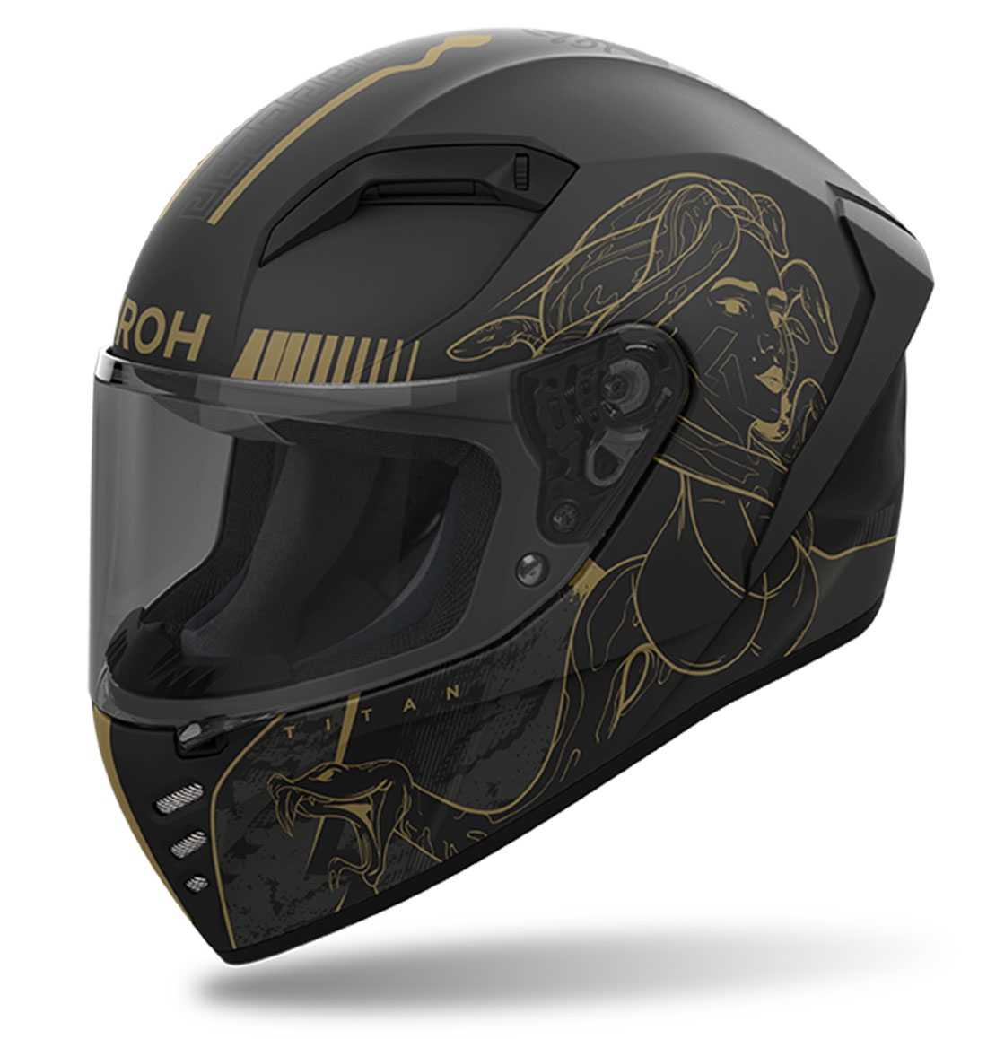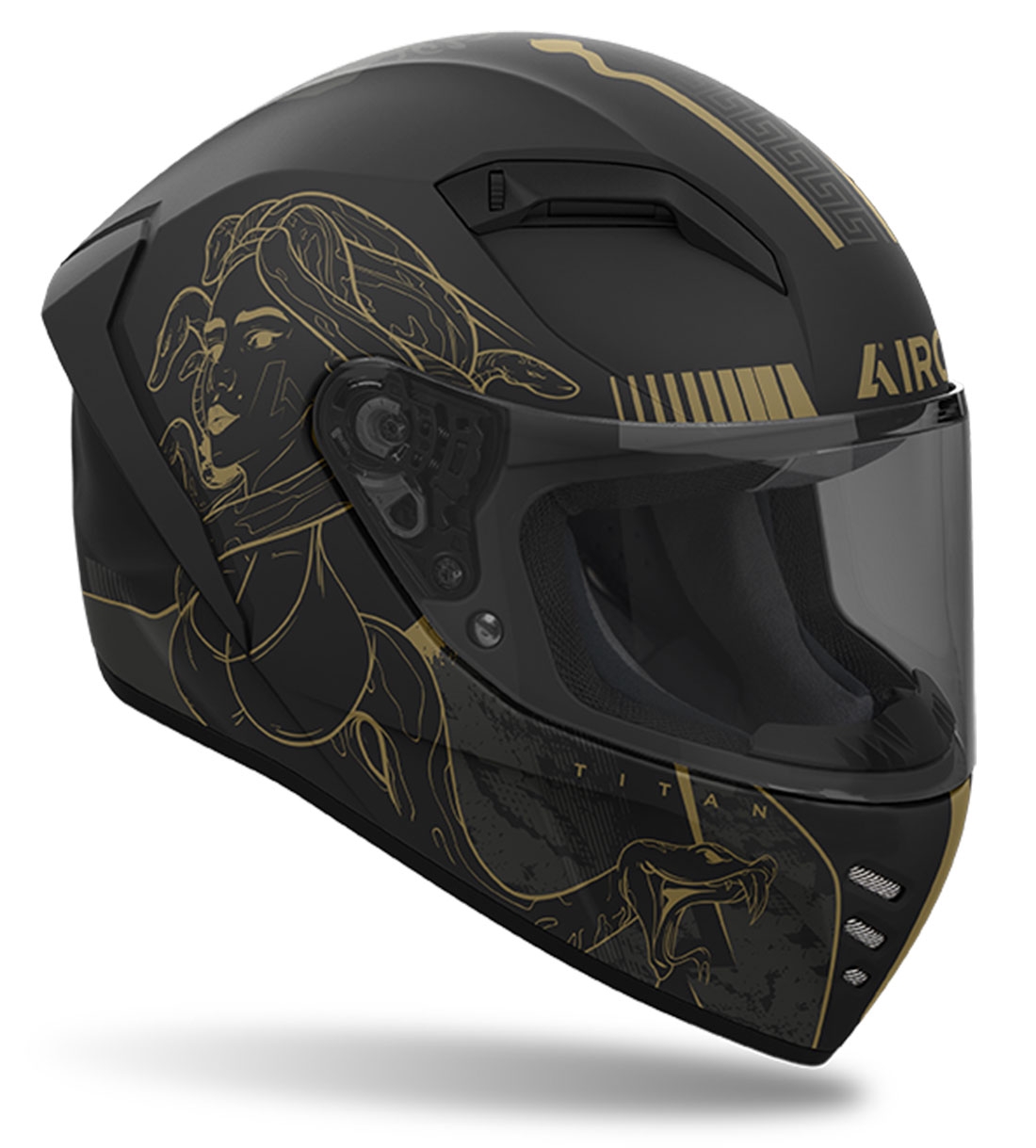 Casco Airoh Connor Titan Mate. Casco para moto de carretera Airoh Connor con diseño aerodinámico y confort avanzado. Inspirado en la fuerza y fluidez del viento, el Airoh Connor es el compañero perfecto para cualquier aventura en moto. Con un diseño moderno, gráficos cautivadores y características orientadas al rendimiento, este casco es un imprescindible para quienes buscan combinar estilo, comodidad y seguridad.