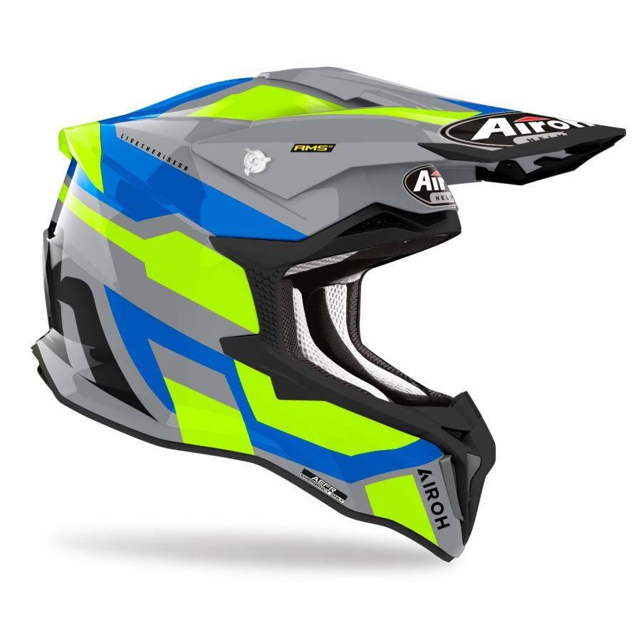 - El sistema de protección AMS2 (Airoh Multiaction Safety System) es una característica sobresaliente del Strycker. Esta innovadora tecnología patentada por Airoh está diseñada para disipar la energía rotacional en caso de impacto angular, reduciendo así los riesgos de lesiones cerebrales.