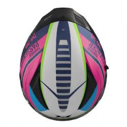 - Sistema de Ventilación Avanzado: El casco dispone de un eficiente sistema de ventilación con entradas de aire superiores y frontales, junto con salidas traseras, optimizando el flujo de aire para mantener al piloto fresco y cómodo.