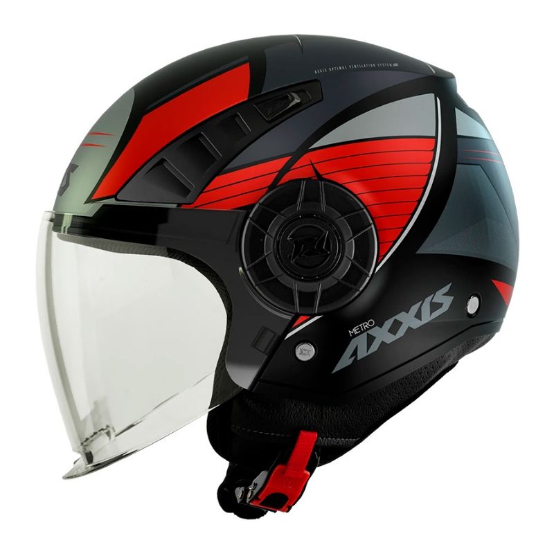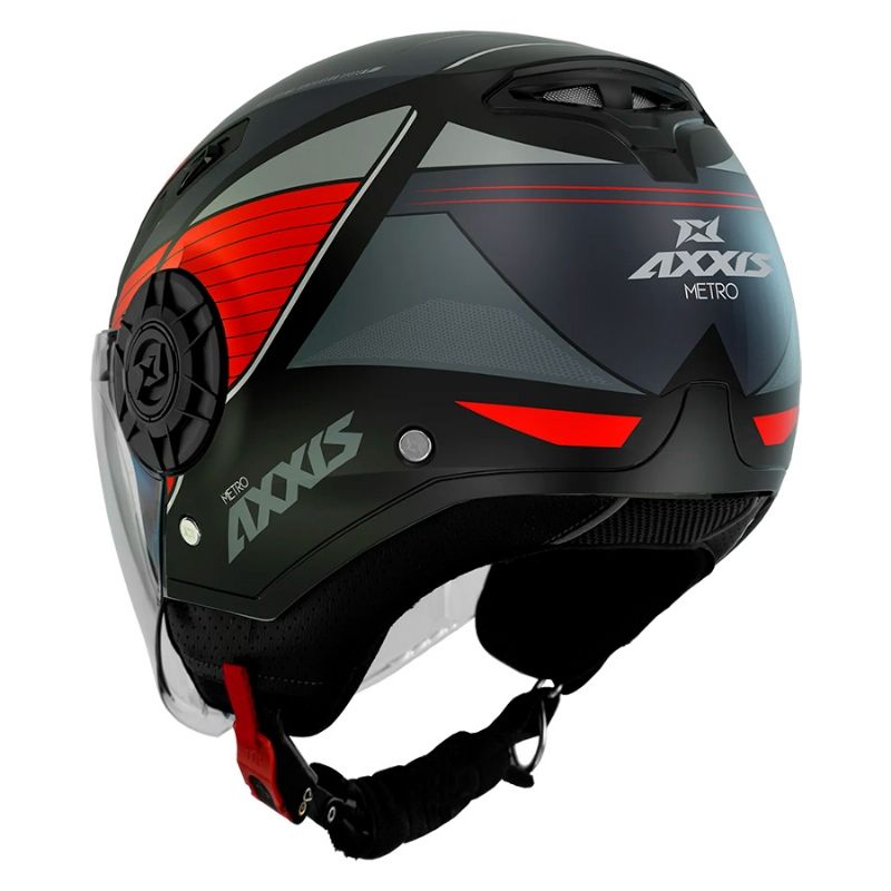 El Axxis Metro S, pensado para el motorista urbano, presenta ventilaciones superiores que favorecen una buena circulación del aire, y su pantalla amplia ayuda a proteger contra las inclemencias del tiempo y el viento. Su diseño es sencillo pero funcional.