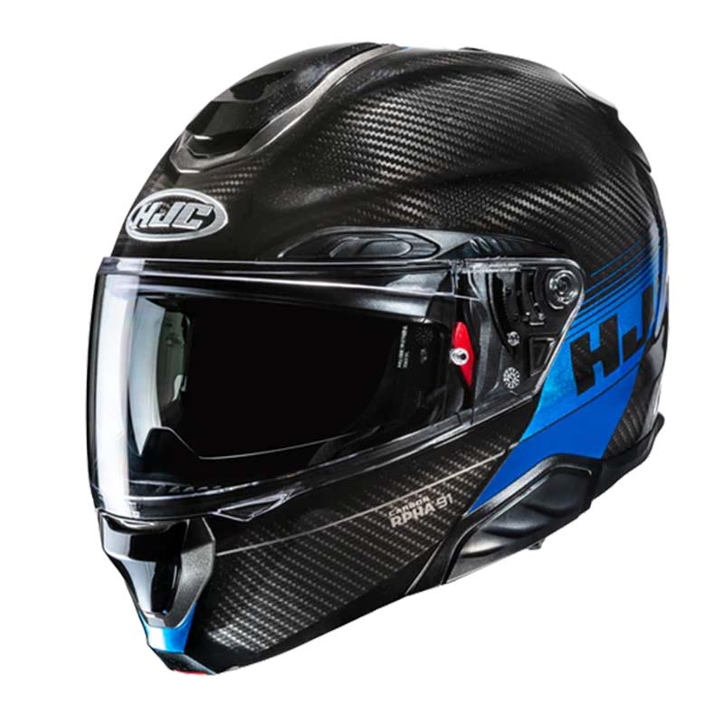 Casco HJC RPHA 91 Carbon Elig MC2. Casco modular HJC RPHA 91 Carbon – Touring premium ultraligero en Ramirez Moto al mejor precio. El HJC RPHA 91 Carbon es la versión tope de gama dentro de los cascos modulares touring de HJC. Desarrollado con la tecnología P.I.M. EVO Carbon (Premium Integrated Matrix EVO Carbon), combina fibra de carbono, fibra de vidrio híbrida, aramida, lino natural y tejido orgánico para ofrecer la máxima resistencia a los impactos con un peso ultraligero.