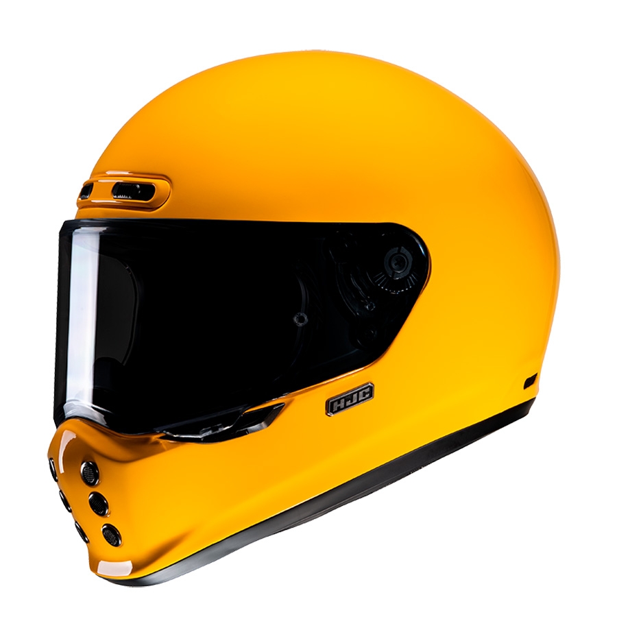 Casco HJC V10 Amarillo Oscuro (Colección HJC 2023). HJC nos presenta en 2023 el V10, un casco atrevido para quienes buscan un concepto clásico y rompedor con la última tecnología y homologación ECE 22.06. Dispone de calota de fibra de vidrio avanzada que garantiza el mayor nivel de seguridad y un peso ligero y sistema de ventilación avanzado ACS que permite evacuar el calor y la humedad para obtener el máximo confort. Su pantalla es compatible con antivaho Pinlock y permite su extracción sin herramientas, cuenta con cierre de doble hebilla y sistema de extracción de emergencia en caso de accidente.