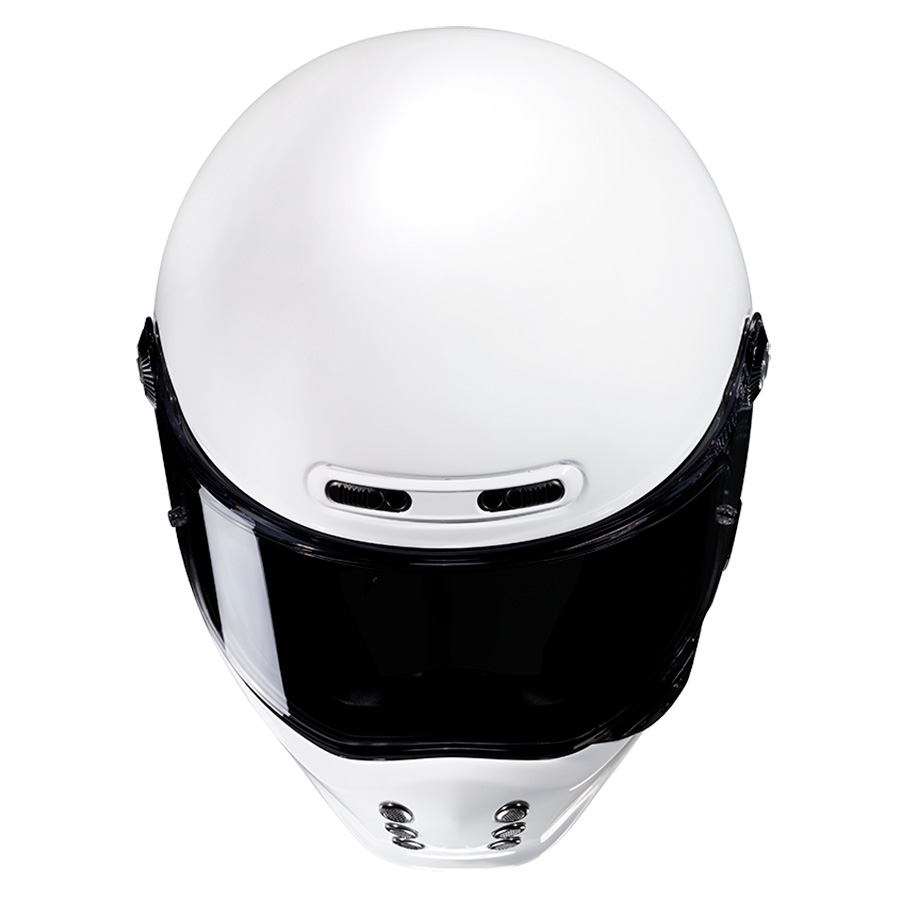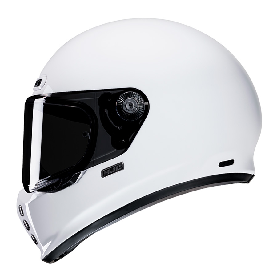 Casco HJC V10 Blanco (Colección HJC 2023). HJC nos presenta en 2023 el V10, un casco atrevido para quienes buscan un concepto clásico y rompedor con la última tecnología y homologación ECE 22.06. Dispone de calota de fibra de vidrio avanzada que garantiza el mayor nivel de seguridad y un peso ligero y sistema de ventilación avanzado ACS que permite evacuar el calor y la humedad para obtener el máximo confort. Su pantalla es compatible con antivaho Pinlock y permite su extracción sin herramientas, cuenta con cierre de doble hebilla y sistema de extracción de emergencia en caso de accidente.