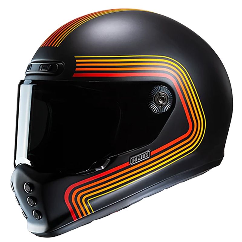 Casco HJC V10 Foni MC1SF (Colección HJC 2023-2024). HJC nos presenta en 2023 el V10, un casco atrevido para quienes buscan un concepto clásico y rompedor con la última tecnología y homologación ECE 22.06. Dispone de calota de fibra de vidrio avanzada que garantiza el mayor nivel de seguridad y un peso ligero y sistema de ventilación avanzado ACS que permite evacuar el calor y la humedad para obtener el máximo confort. Su pantalla es compatible con antivaho Pinlock y permite su extracción sin herramientas, cuenta con cierre de doble hebilla y sistema de extracción de emergencia en caso de accidente.