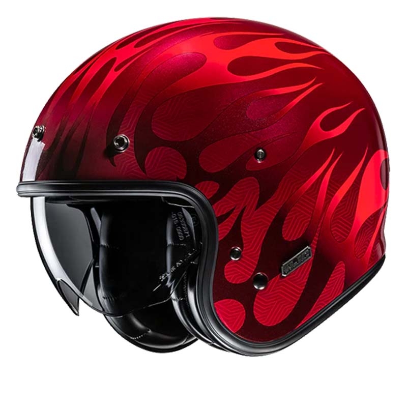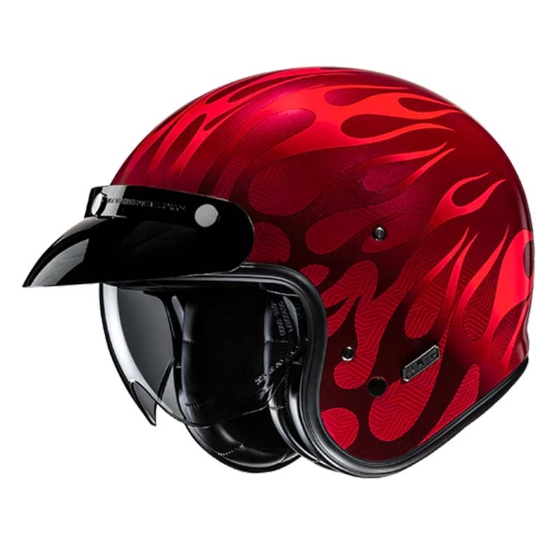 Casco HJC V31 Firo MC1. El casco de moto jet HJC V31 es un casco abierto de estilo retro compuesto por un avanzado compuesto de fibra de vidrio calota para proporcionar un casco ligero. Este casco de moto jet cuenta con un visor solar integrado de 3 posiciones y pantalla con revestimiento antiarañazos que se despliega fácilmente para deslizarse hacia arriba o hacia abajo. Para aumentar la sensación de vintage, el HJC V30 está equipado con un interior de cuero y gamuza y un soporte para la correa de las gafas. El casco HJC V30 cuenta con almohadillas extraíbles y lavables y con hueco para altavoces.