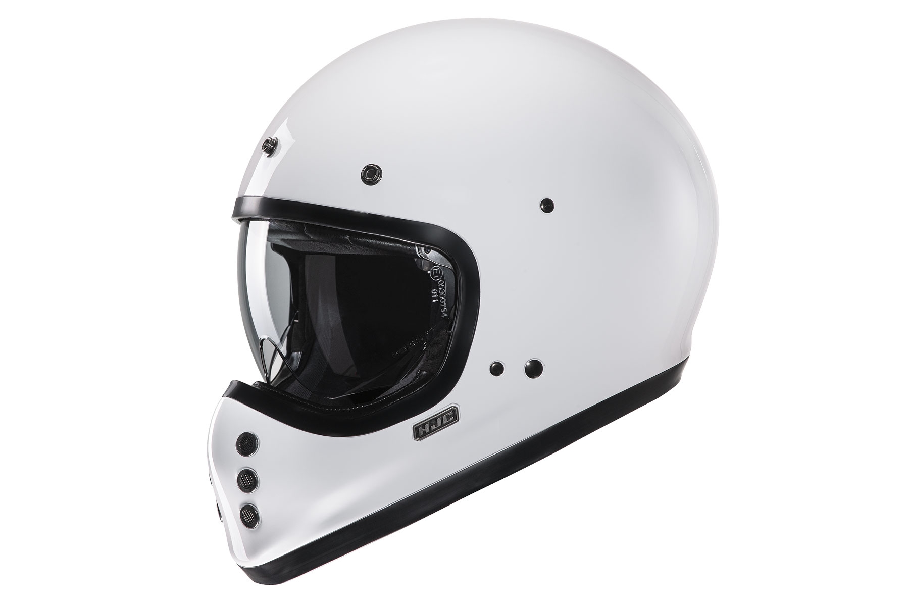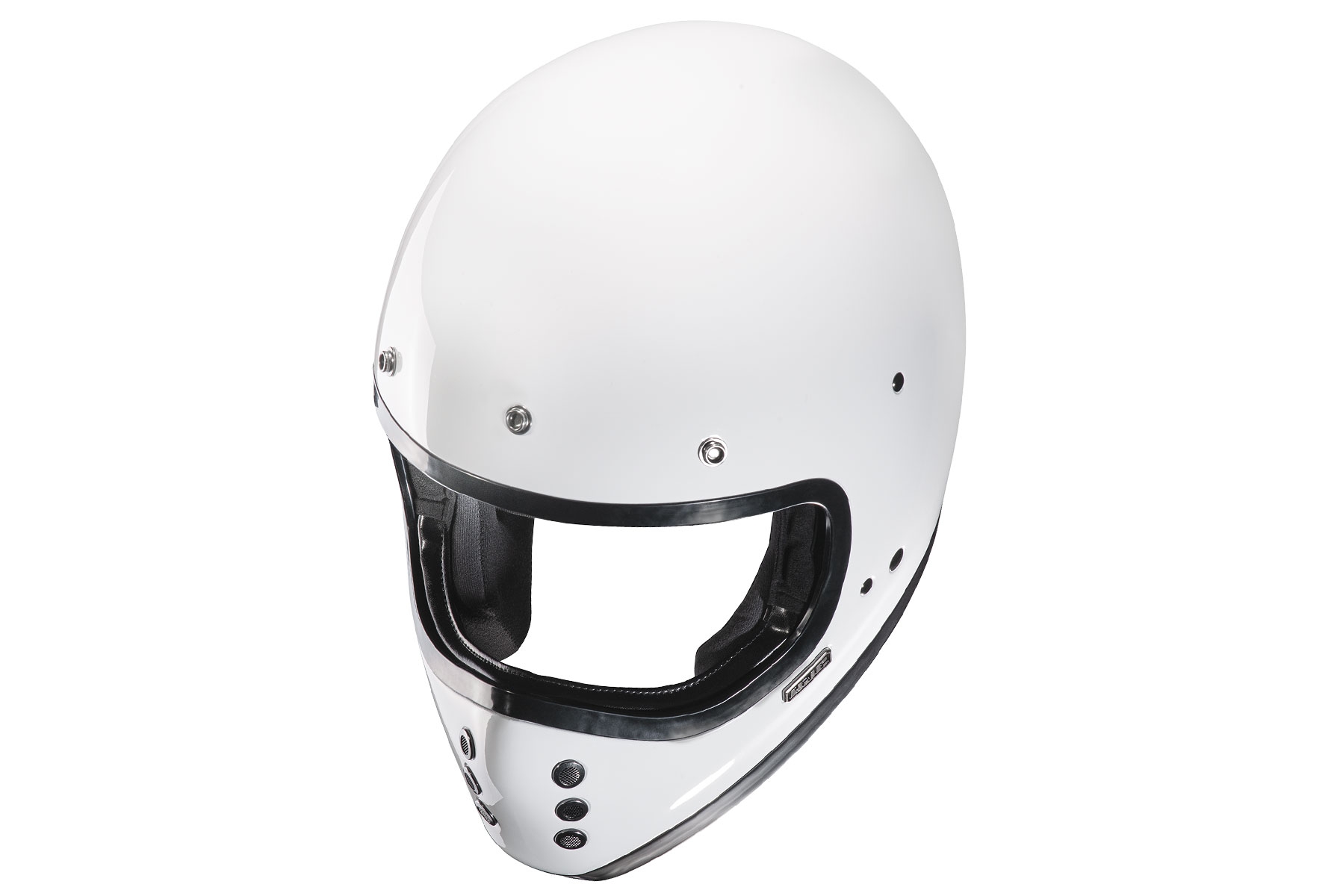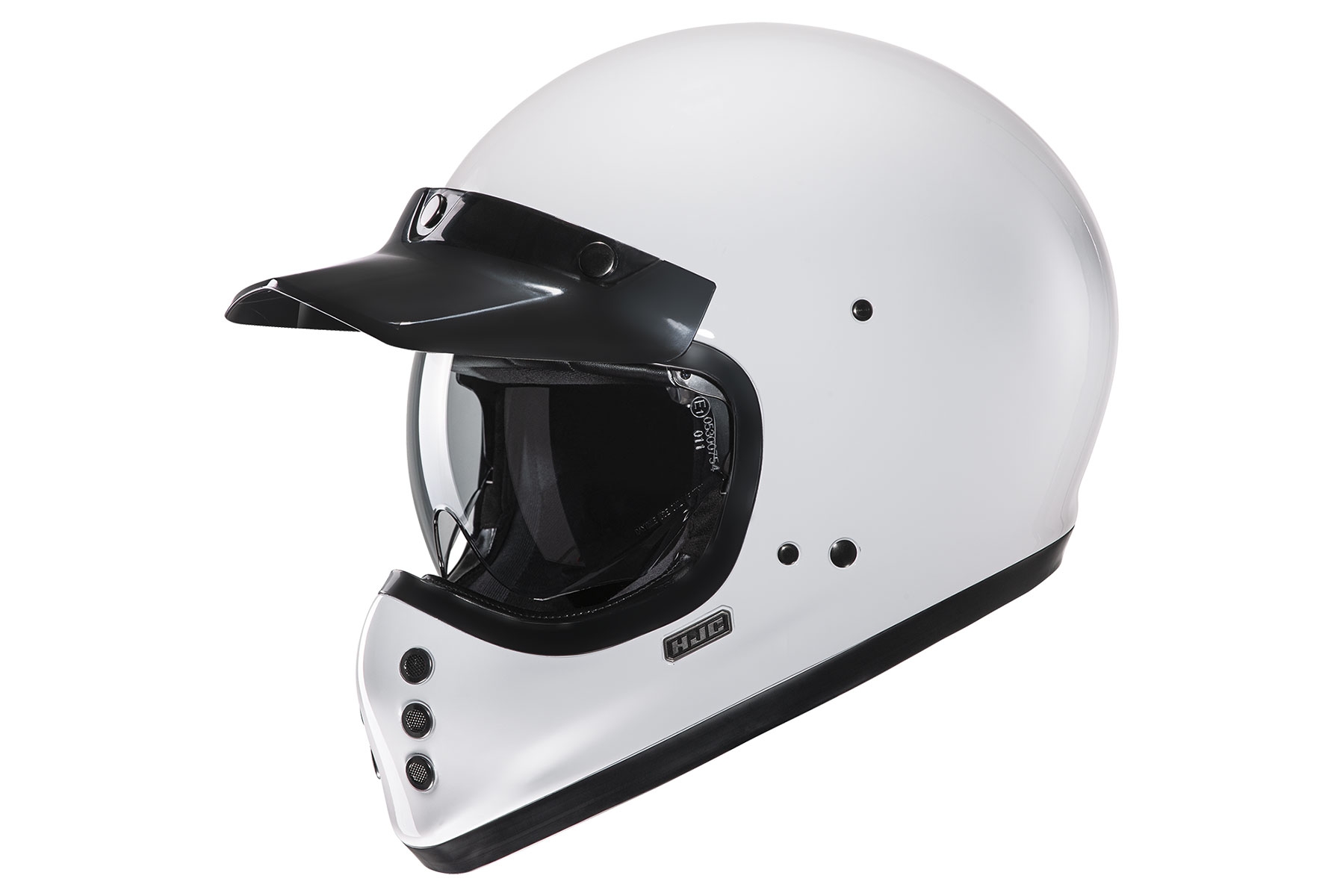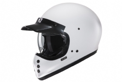 Casco Hjc V60 Blanco (colección 2022). Hjc presenta el nuevo Hjc V60, su primer casco integral off-road de estilo vintage. Este casco está inspirado en el FG-01 original de los años 80, aunque sus características y tecnología son de última generación. Cuenta con una resistente calota exterior de fibra de vidrio ligera, un amplio visor solar interior IS-10, interior desmontable de alta calidad y acolchados laterales con sistema de liberación rápida. El casco Hjc V60 se suministra con una visera de pico extraíble con 3 broches y que le confieren un aspecto todavía más retro. El casco Hjc V60 te permitirá disfrutar de tu moto y del estilo que más te gusta, con las mejores prestaciones de seguridad y confort.