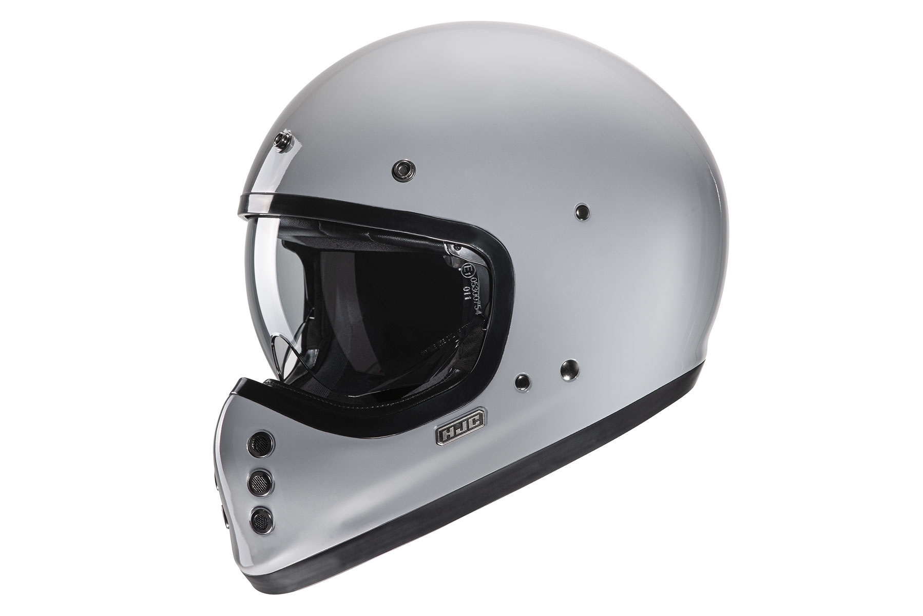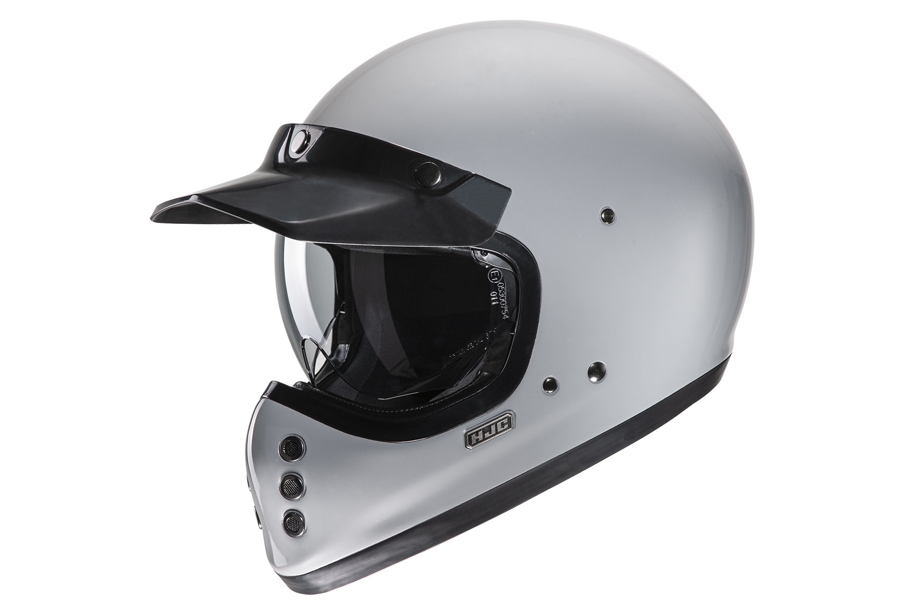 Casco Hjc V60 Nardo Gris (colección 2022). Hjc presenta el nuevo Hjc V60, su primer casco integral off-road de estilo vintage. Este casco está inspirado en el FG-01 original de los años 80, aunque sus características y tecnología son de última generación. Cuenta con una resistente calota exterior de fibra de vidrio ligera, un amplio visor solar interior IS-10, interior desmontable de alta calidad y acolchados laterales con sistema de liberación rápida. El casco Hjc V60 se suministra con una visera de pico extraíble con 3 broches y que le confieren un aspecto todavía más retro. El casco Hjc V60 te permitirá disfrutar de tu moto y del estilo que más te gusta, con las mejores prestaciones de seguridad y confort.