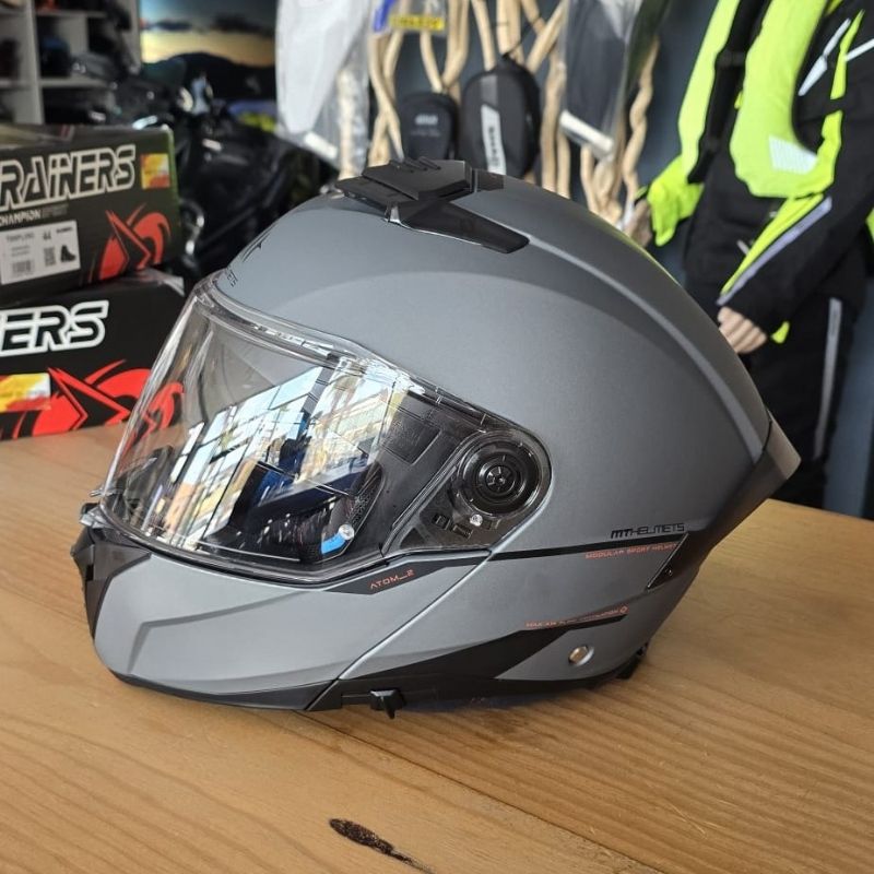 Casco MT Atom 2 SV Solid A2 Titanio Mate REACONDICIONADO. El MT Atom 2 SV, la última joya de MT Helmets, se ha consolidado como una verdadera revolución en el segmento Flip-Up, deslumbrando tanto por sus excepcionales prestaciones como por su precio sorprendente. Este casco modular no solo hereda las fortalezas de su predecesor, sino que también introduce innovaciones de última generación, lo que lo convierte en el casco más versátil, completo y accesible del mercado.