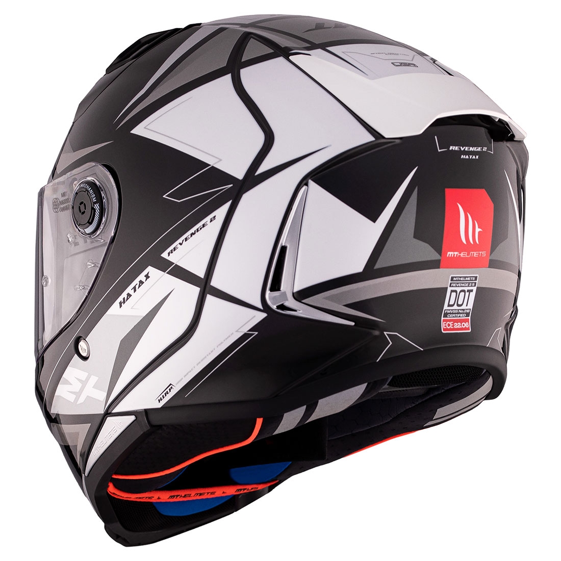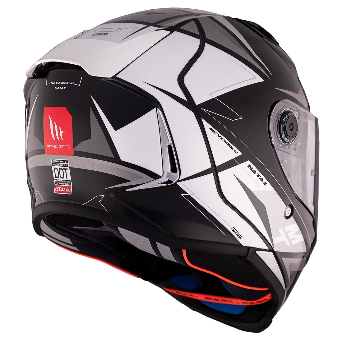 Casco MT FF110B Revenge 2 S Hatax B2 Brillo. El casco integral MT Helmets Revenge 2 S redefina la seguridad y el estilo en el mundo del motociclismo. Este modelo no solo hereda las mejores características del Revenge 2, sino que las mejora gracias a su completa renovación y su estricto cumplimiento con la certificación de seguridad 2206.