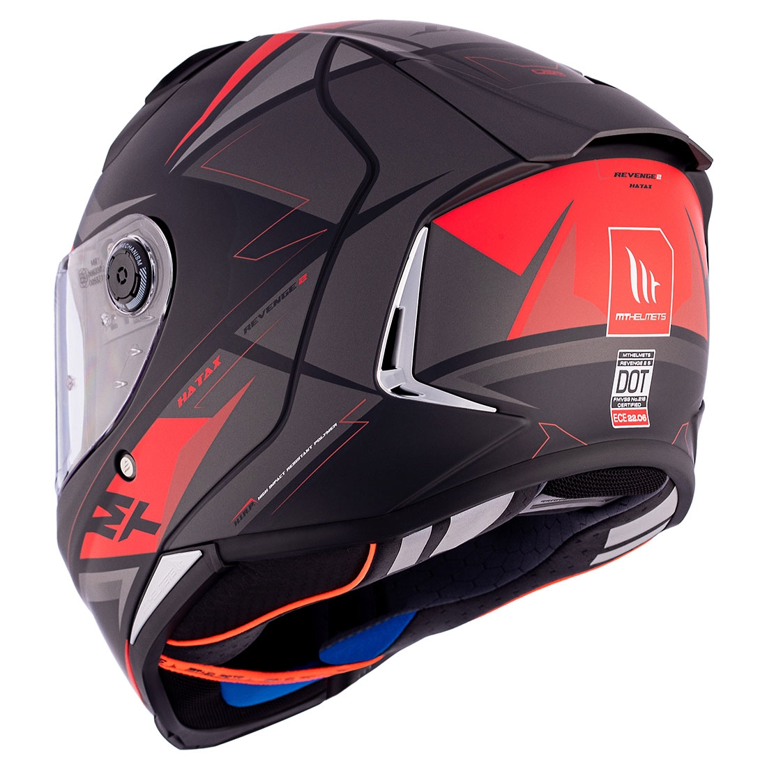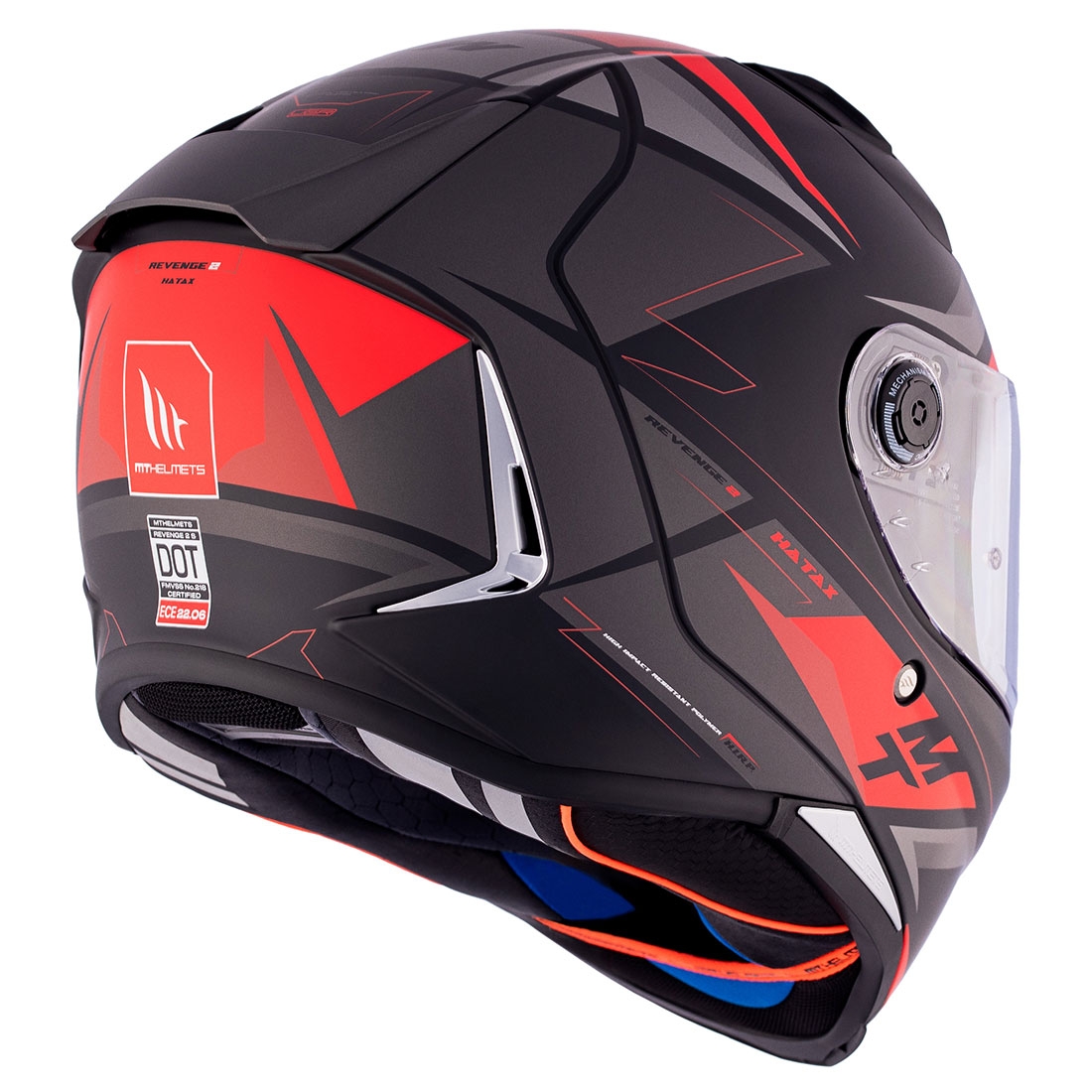 Casco MT FF110B Revenge 2 S Hatax B5 Mate. El casco integral MT Helmets Revenge 2 S redefina la seguridad y el estilo en el mundo del motociclismo. Este modelo no solo hereda las mejores características del Revenge 2, sino que las mejora gracias a su completa renovación y su estricto cumplimiento con la certificación de seguridad 2206.