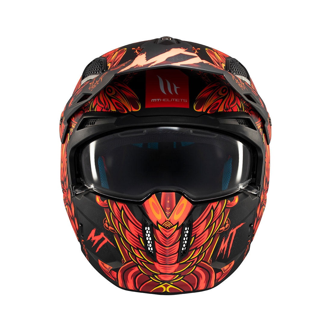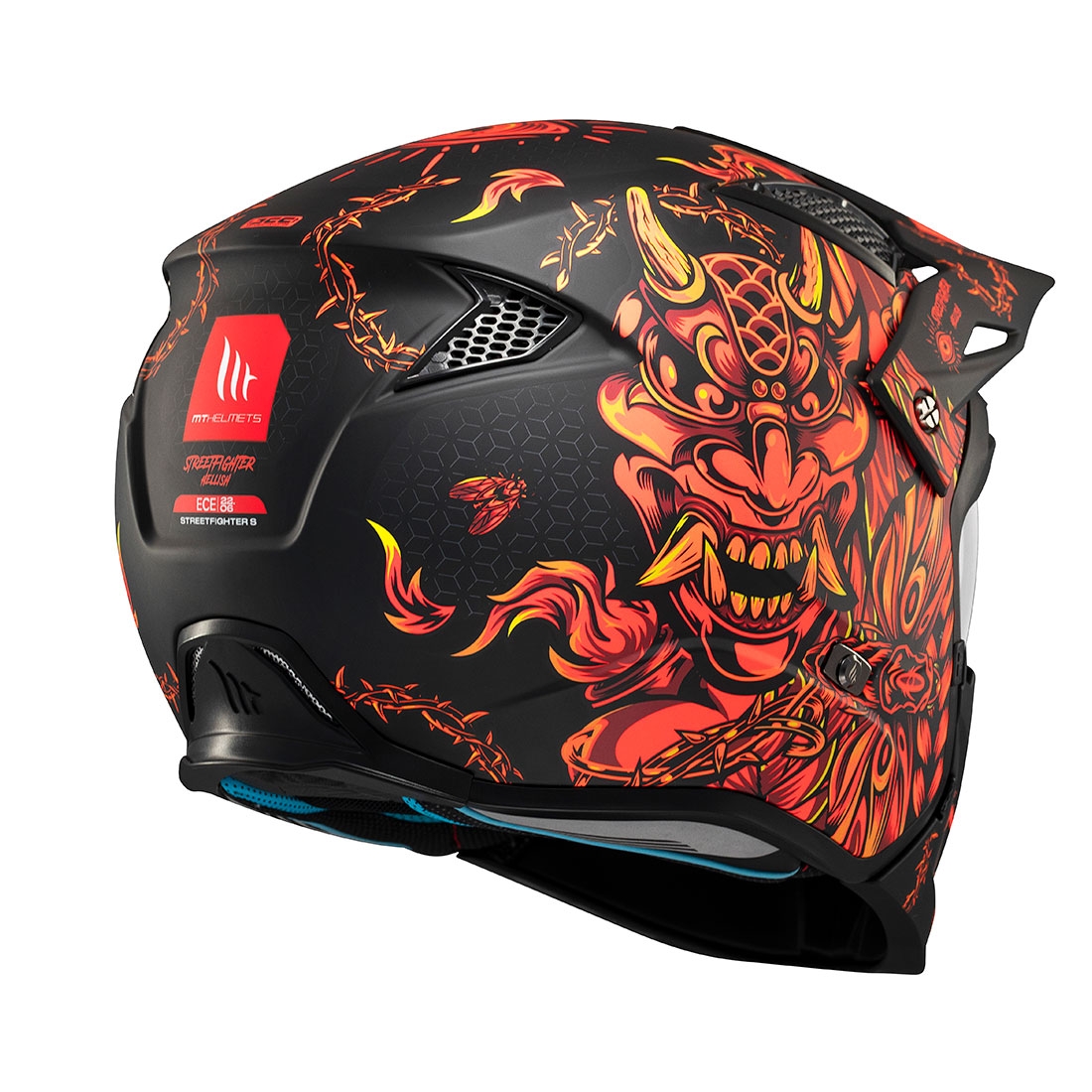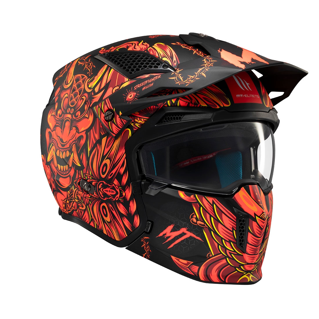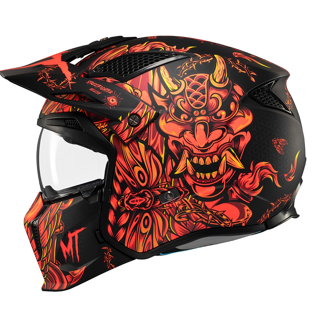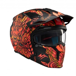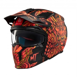 Casco MT TT902B Streetfighter SV S Hellish B5 Negro Rojo Mate. La marca MT Helmets redefine la seguridad y la versatilidad con el nuevo Streetfighter SV S. Este casco convertible, con su estilo agresivo y personalizable, se adapta perfectamente al ritmo y a las exigencias de cada rider. Con una calota exterior de termoplástico inyectado, se ha demostrado su resistencia a fuertes impactos y su excepcional ligereza.