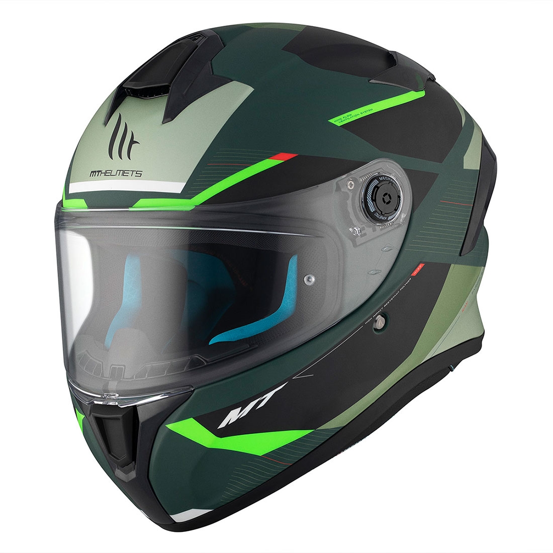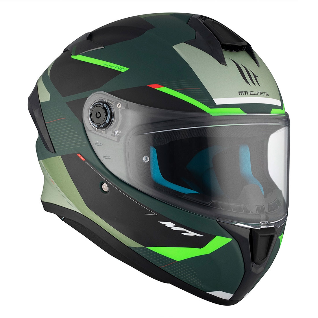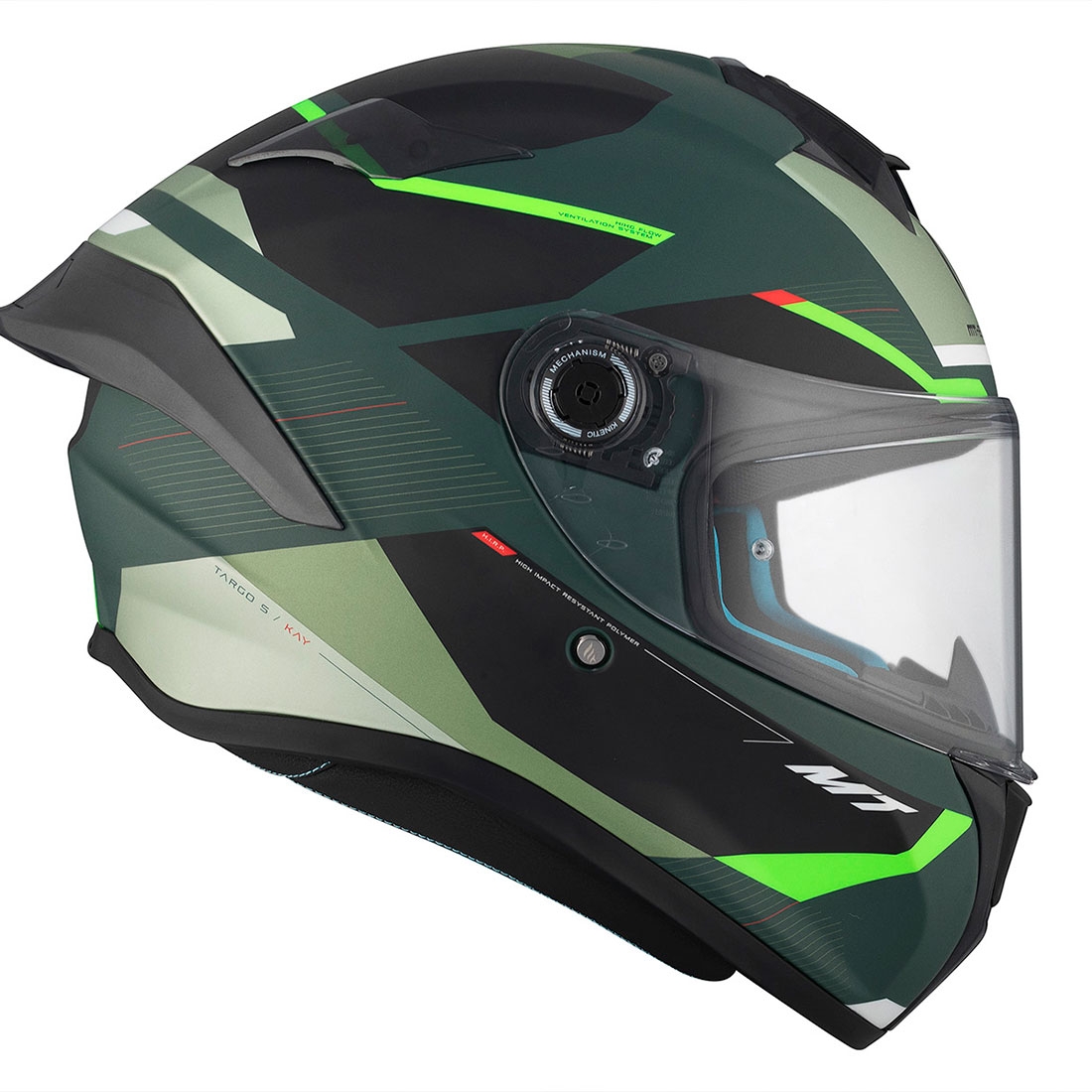 - Sistema MT-QVSS: El MT Helmets Targo S integra el exclusivo MT-QVSS (Quick Visor Swap System), un sistema de pantalla de alta resistencia con cambio rápido diseñado por el departamento de I+D+i de MT Helmets. Este sistema facilita el cambio de la pantalla, adaptándose rápidamente a las condiciones de iluminación y clima.