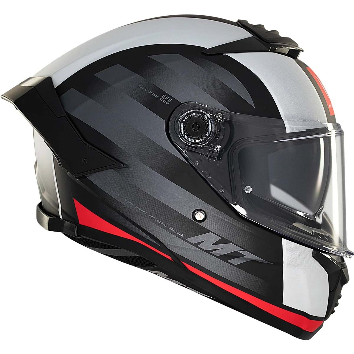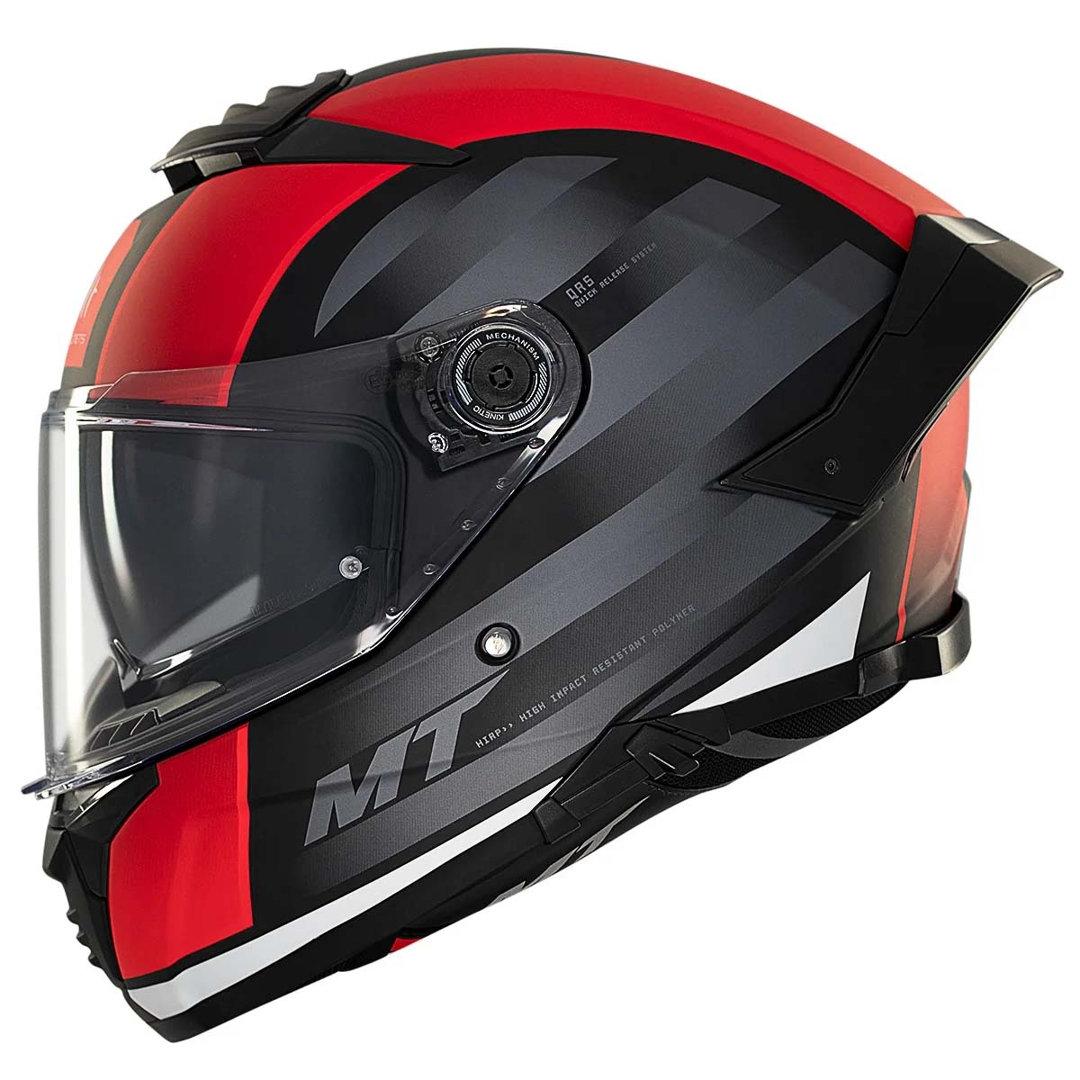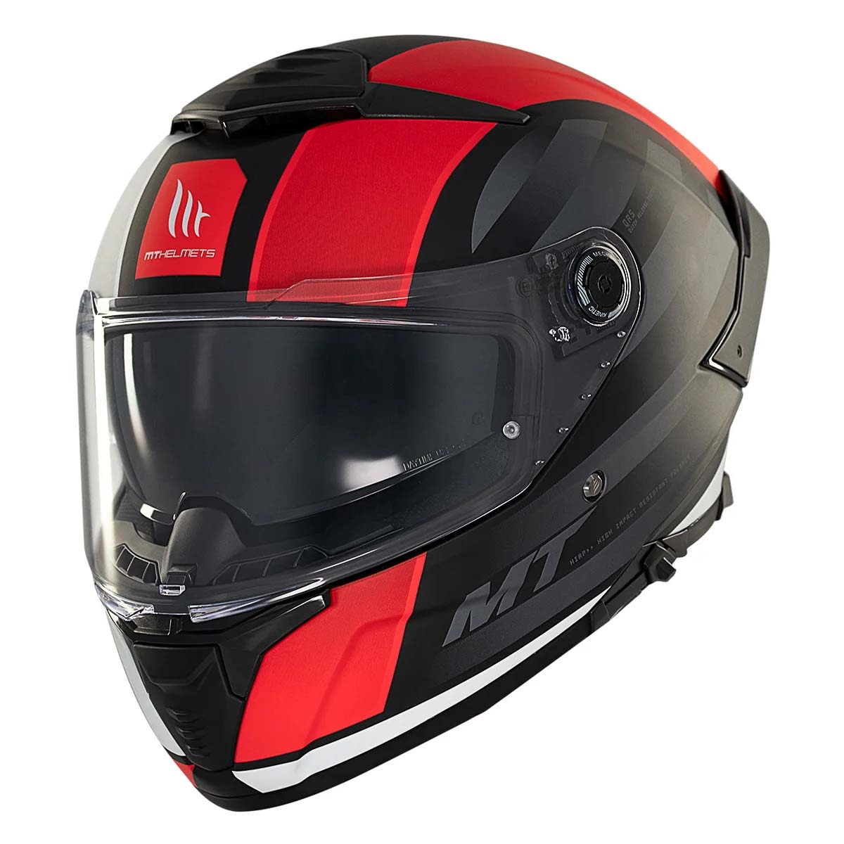 Casco MT Thunder 4 SV Treads B5 Mate. Thunder 4 SV FF118SV es el primer casco integral de MT Helmets en introducir la nueva homologación ECE 22.06. El casco está dotado de los últimos avances tecnológicos que son el resultado de la experiencia adquirida en las competiciones más prestigiosas. Está realizado en HIRP, una fórmula mejorada de polímeros inyectados en bloques muy precisos que proporciona mayor resistencia contra los impactos con un peso reducido.