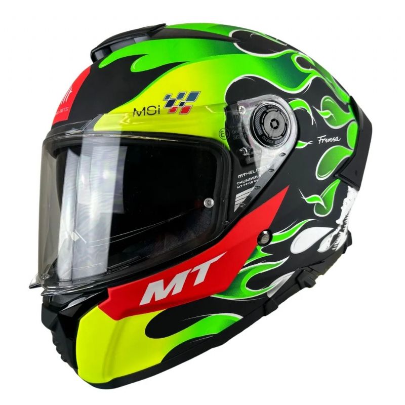 Casco MT Thunder 4 SV Yamanaka 2024 B6 Mate. Thunder 4 SV FF118SV es el primer casco integral de MT Helmets en introducir la nueva homologación ECE 22.06. El casco está dotado de los últimos avances tecnológicos que son el resultado de la experiencia adquirida en las competiciones más prestigiosas. Está realizado en HIRP, una fórmula mejorada de polímeros inyectados en bloques muy precisos que proporciona mayor resistencia contra los impactos con un peso reducido.