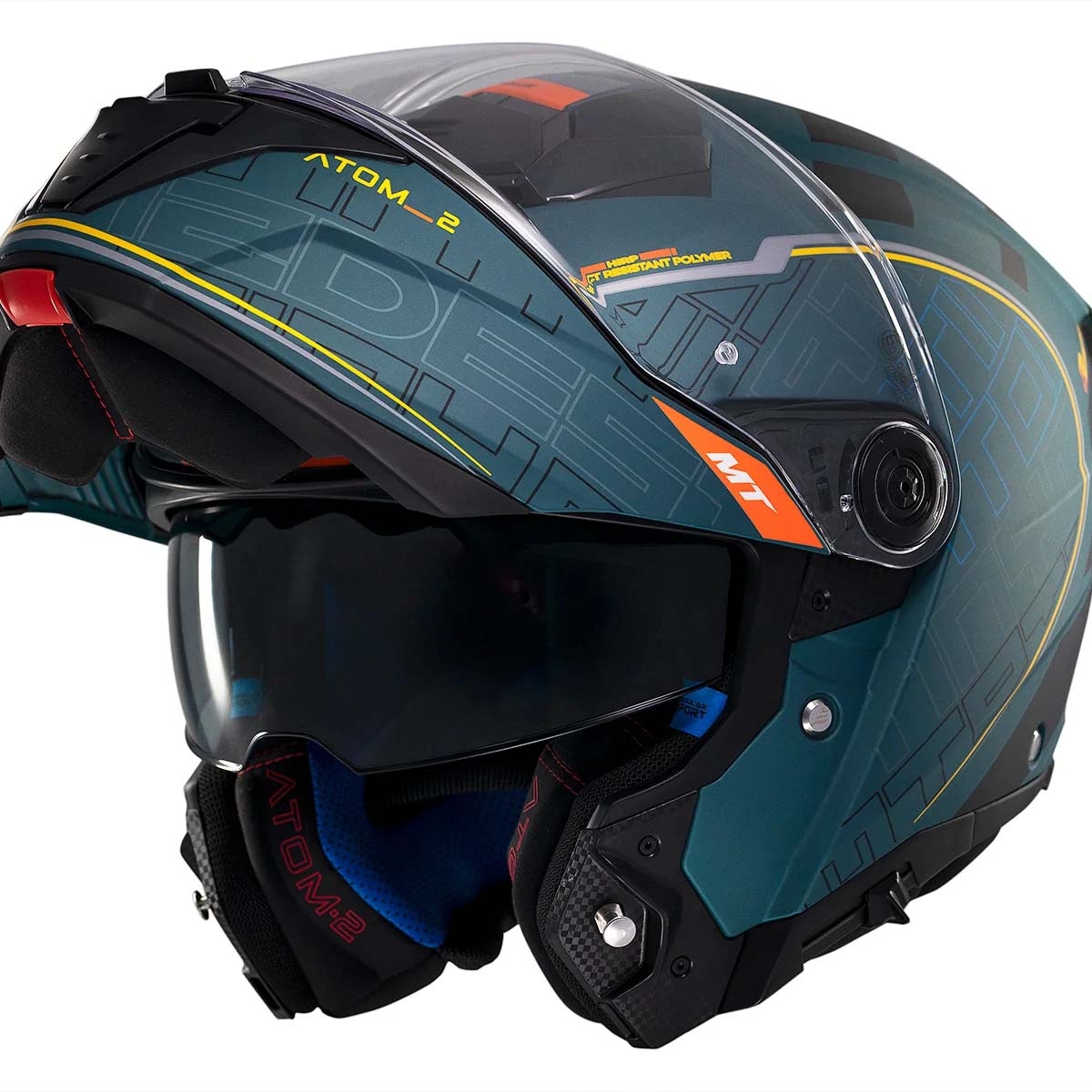 - Sistema de Visor Retráctil MT-ESP del MT Helmets Atom 2 SV: Este innovador casco modular viene equipado con el sistema de visor retráctil MT-ESP, una característica distintiva del MT Helmets Atom 2 SV. Esta funcionalidad ofrece una protección solar extendida, vital para adaptarse a diferentes condiciones de iluminación durante la conducción, y demuestra el compromiso de MT Helmets con la comodidad y la seguridad del motociclista.