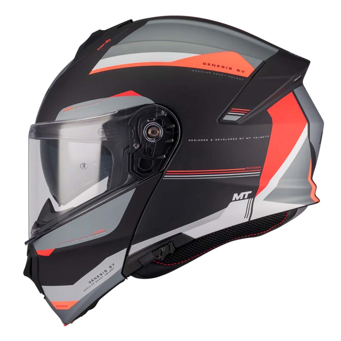 Casco Mt Genesis Sv Raccoon B5 Mate. El MT Genesis SV es el nuevo casco modular de MT Helmets que amplía la gama Flip-Up de la marca, ofreciendo una opción de acceso con un nivel de calidad, seguridad y confort muy por encima de su categoría. Diseñado para cumplir la homologación ECE 22.06, el Genesis SV garantiza una protección superior y una excelente relación seguridad-precio, siendo una de las propuestas más equilibradas del mercado.