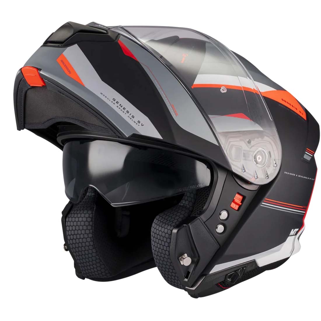 El MT Genesis SV representa la entrada perfecta al mundo de los cascos modulares. Combina un diseño moderno con una seguridad de nivel superior, visor solar integrado y una excelente ventilación. Su homologación ECE 22.06 P/J lo convierte en un modelo polivalente, ideal para motoristas que buscan versatilidad, confort y un precio competitivo sin renunciar a la fiabilidad de una gran marca.