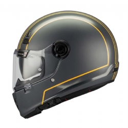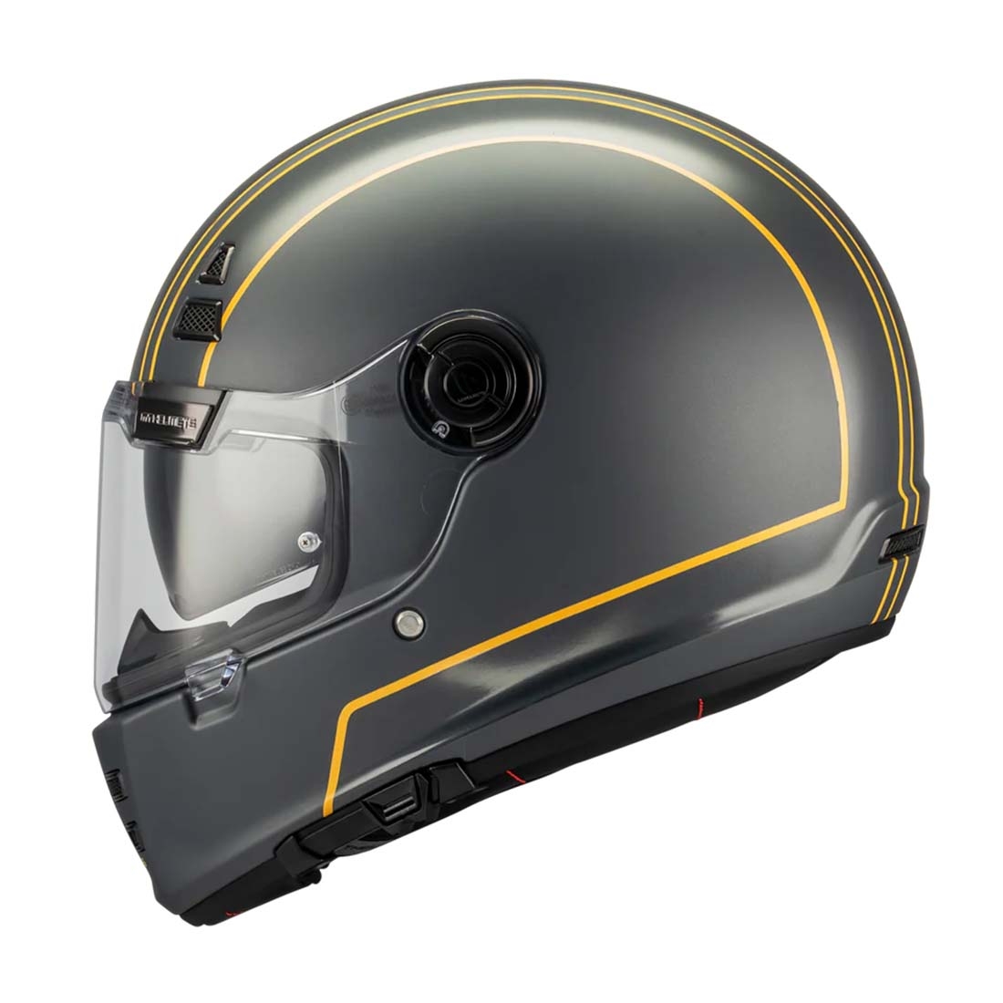 Su calota de líneas clásicas oculta soluciones modernas: pantalla óptica en policarbonato con sellado perimetral, sistema de accionamiento rápido y un interior cómodo y estable para uso diario o rutas largas. El resultado es un full face muy equilibrado: protección, confort y estética icónica.