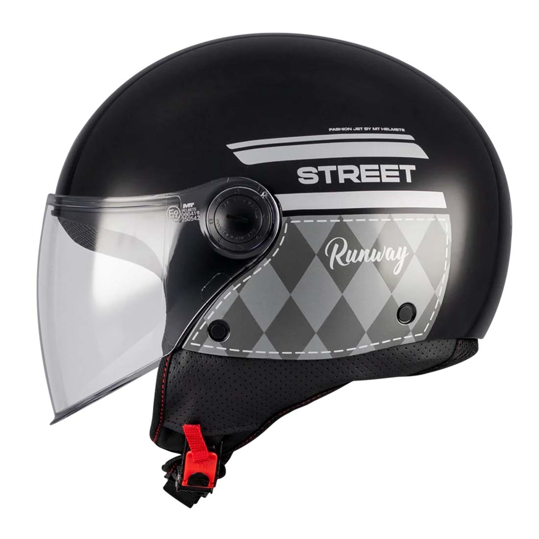 Casco Mt Street S Runway B2 Brillo. El MT Street S es uno de los cascos jet urbanos más emblemáticos de MT Helmets. Con una trayectoria de éxito desde 2016, se ha consolidado como un top ventas gracias a su excelente relación calidad-precio, su diseño sencillo y su gran versatilidad para el día a día en ciudad. Un modelo pensado para quienes buscan comodidad, ligereza y protección en sus desplazamientos urbanos.
