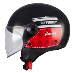 El Street S combina una estética moderna con prestaciones técnicas que garantizan seguridad y confort. Su calota ligera y resistente, junto a su pantalla panorámica de alta calidad óptica, proporcionan una conducción segura y cómoda tanto en trayectos cortos como en uso diario.