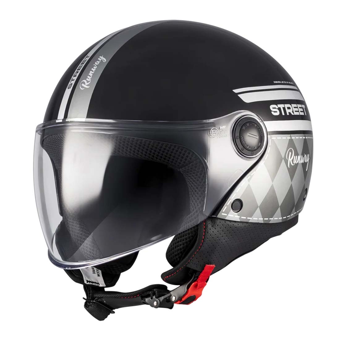 Casco Mt Street S Runway B5 Brillo. El MT Street S es uno de los cascos jet urbanos más emblemáticos de MT Helmets. Con una trayectoria de éxito desde 2016, se ha consolidado como un top ventas gracias a su excelente relación calidad-precio, su diseño sencillo y su gran versatilidad para el día a día en ciudad. Un modelo pensado para quienes buscan comodidad, ligereza y protección en sus desplazamientos urbanos.