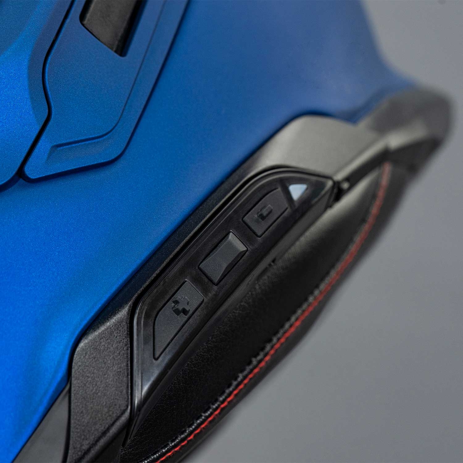 Integración discreta y segura del intercomunicador Shoei GT-Air 3 SRL3, que se ajusta perfectamente a la calota sin comprometer la aerodinámica ni la insonoridad.