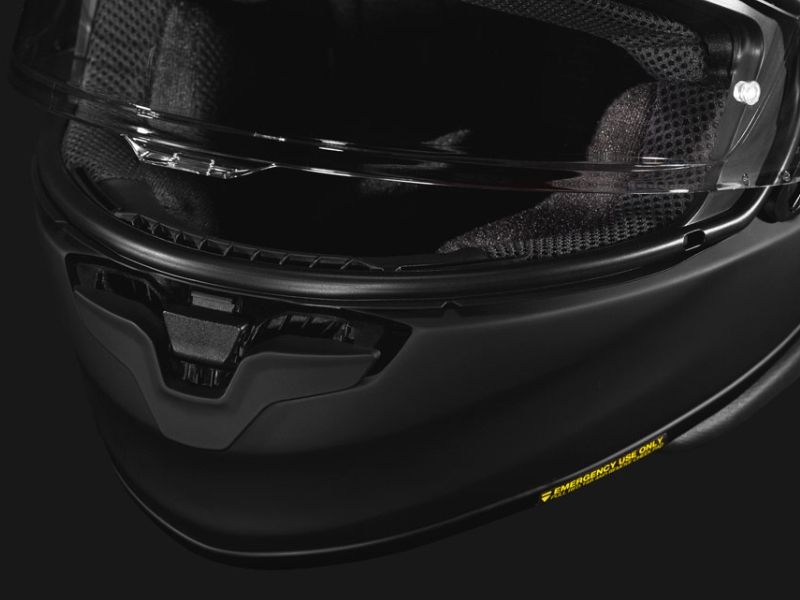 - Sistema EQRS (Emergency Quick Release System) para facilitar la extracción del casco en caso de accidente. Una vez quitados los acolchados laterales, se puede sacar el casco con mayor seguridad y sin tener que forzar la zona del cuello, reduciendo con ello el riego de lesión.