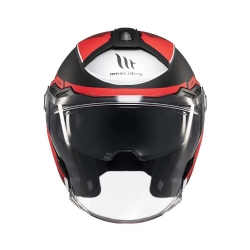 Este modelo cuenta con una pantalla larga de alta resistencia que ofrece una visión clara y amplia, mejorando la seguridad del piloto al proporcionar un campo de visión sin obstrucciones. El sistema de extracción rápida de pantalla, MT-QVSS (Quick Visor Swap System), permite cambios rápidos y seguros, incluso mientras se lleva puesto el casco.