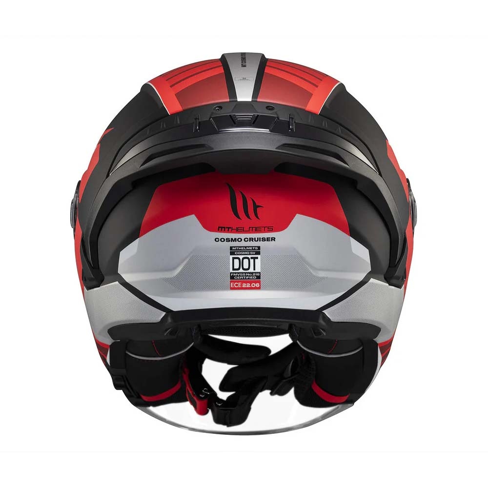 Este casco está homologado según las normativas ECE 22.06 y DOT, lo que asegura que el casco MT Cosmo SV cumple con los estándares internacionales de seguridad y es apto para su uso en una amplia variedad de entornos de conducción.