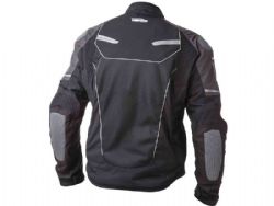 - Confeccionada con una combinación de tejidos técnicos, duraderos y resistentes a la abrasión; Cordura, malla de poliamida y refuerzo de cuero negro en los codos y los hombros.