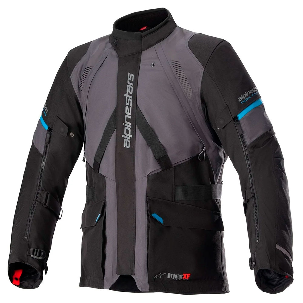 Chaqueta Alpinestars Monteira Drystar XF Gris / Negro / Azul. La Monteira Drystar XF de la colección Alpinestars 2023, es lo último del fabricante italiano en chaquetas de gama alta para moto de turismo. Su confección en tejido de poliéster 450D con las zonas más vulnerables en 600D, proporcionan una elevada resistencia a la abrasión, durabilidad y también un alto nivel de confort. Además, el tejido cuenta con el tratamiento DWR repelente a la lluvia.
