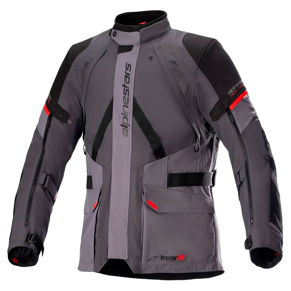 Chaqueta Alpinestars Monteira Drystar XF Gris Oscuro / Gris / Rojo. La Monteira Drystar XF de la colección Alpinestars 2023, es lo último del fabricante italiano en chaquetas de gama alta para moto de turismo. Su confección en tejido de poliéster 450D con las zonas más vulnerables en 600D, proporcionan una elevada resistencia a la abrasión, durabilidad y también un alto nivel de confort. Además, el tejido cuenta con el tratamiento DWR repelente a la lluvia.