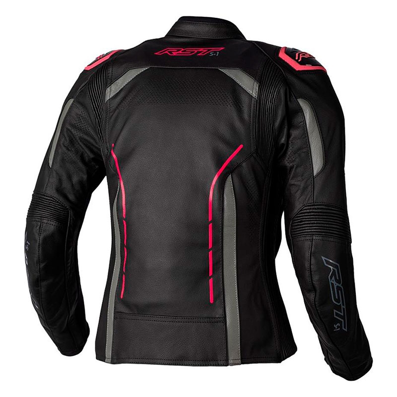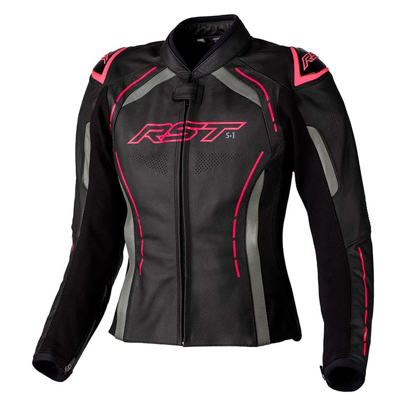 Chaqueta piel mujer RST S1 Woman CE Rosa Flúor. Las mejores características del mono de 1 pieza RST S1 ahora disponibles en está excelente chaqueta de moto para mujer. Confeccionada en piel de vacuno de primera calidad teñida en tambor, la chaqueta RST S1 dispone de cremallera de 360 grados para combinar con los pantalones de piel de RST, formando un traje de 2 piezas de alta calidad con certificación AAA. Cuenta con paneles de piel acordeón de cuatro direcciones y tejido elástico en zonas estratégicas para mayor libertad de movimientos. Las protecciones certificadas en los hombros y los codos además de las deslizaderas de hombro de TPU, garantizan alta protección contra los impactos.