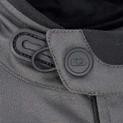 Las zonas de impacto crítico en hombros y codos se han reforzado con materiales y acabados más resistentes, lo que contribuye a la calificación CE A de la chaqueta. Esta protección adicional aporta una sensación de calidad y seguridad.