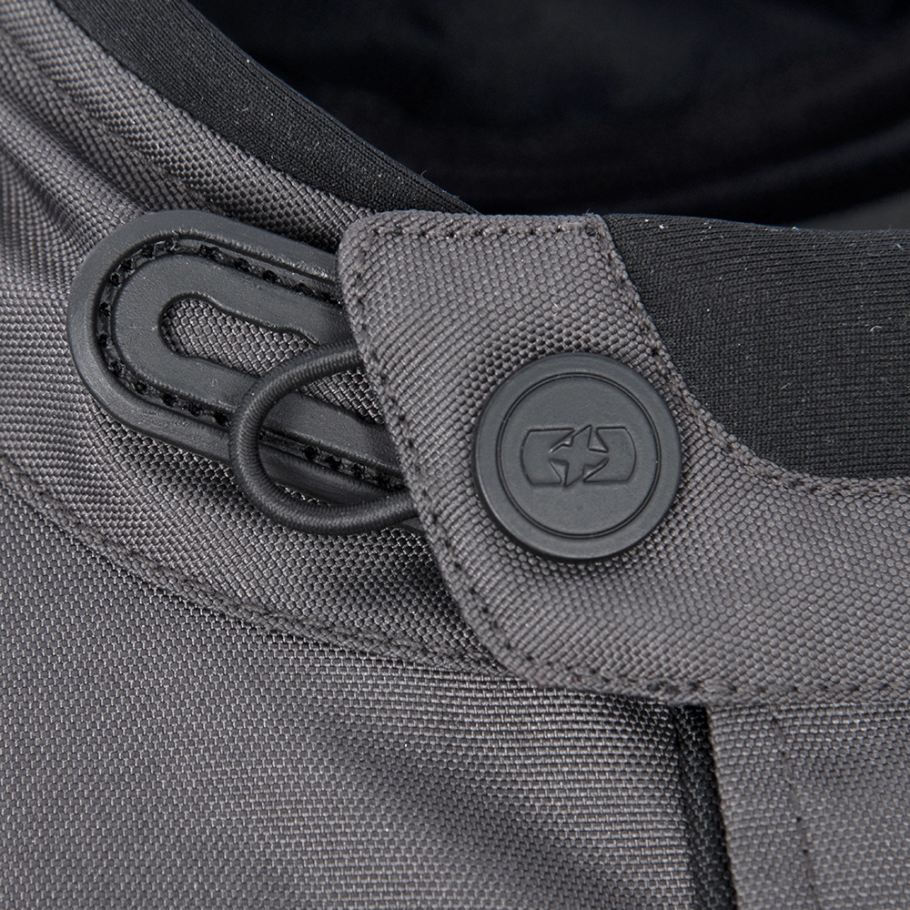 - Control del Agua: La membrana Dry2Dry™ ofrece una impermeabilidad de 10,000 mm/h2o y una transpirabilidad de 20,000 g/m2/24hrs. La carcasa exterior de poliéster de alta densidad mejora la comodidad y facilita que el agua se deslice. Incluye seis cremalleras de ventilación impermeables y un placket contra tormentas.