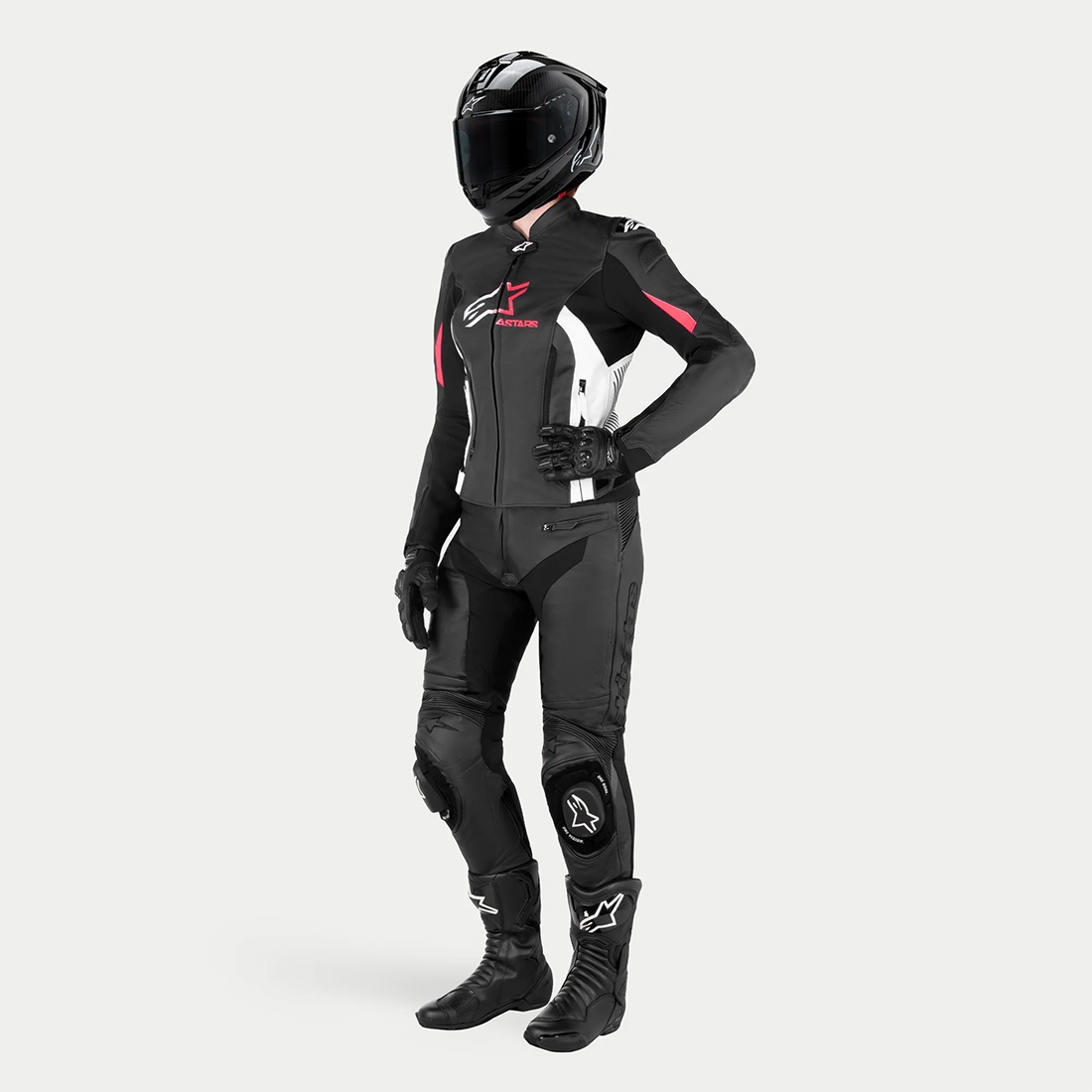 Chaqueta Piel Alpinestars Stella Gp Plus V4 Leather Negro / Blanco / Diva Rosa