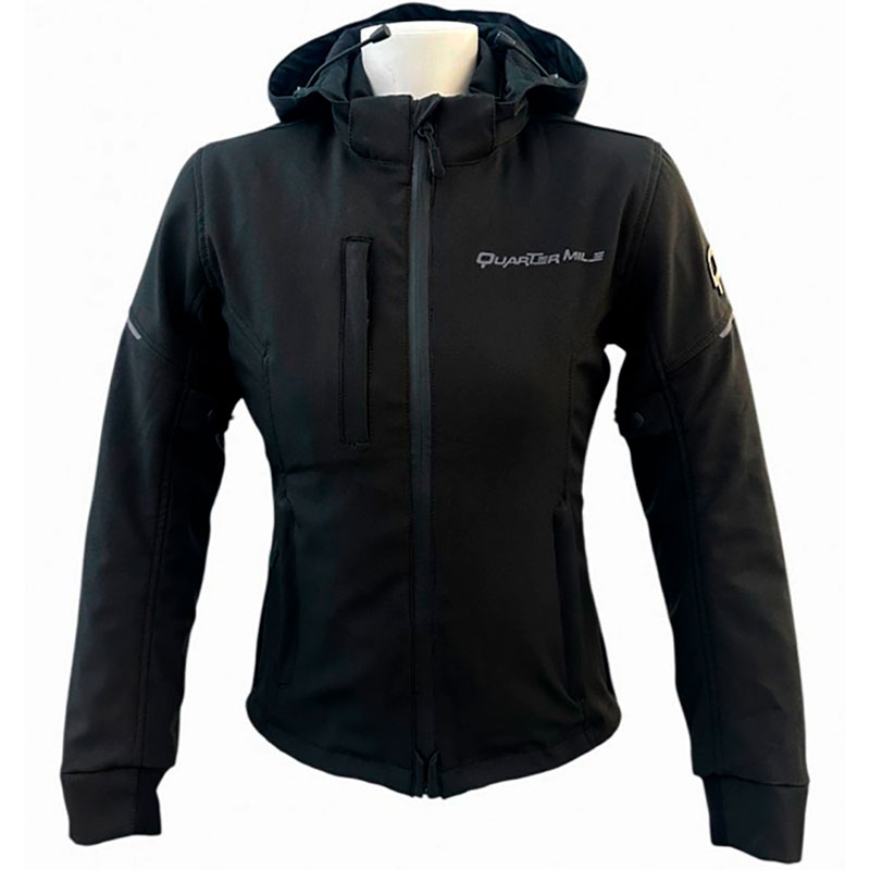 Chaqueta Quarter Mile Manhattan Lady Negro. Chaqueta Quarter Mile Manhattan Lady – Protección urbana con estilo y ligereza para la moto. La Quarter Mile Manhattan Lady es una chaqueta diseñada específicamente para mujer, perfecta para moverse con estilo, protección y comodidad por ciudad o en trayectos cortos en moto o scooter. Fabricada en tejido Softshell impermeable, combina ligereza con protección térmica y certificación CE, convirtiéndola en una opción ideal para el uso diario.